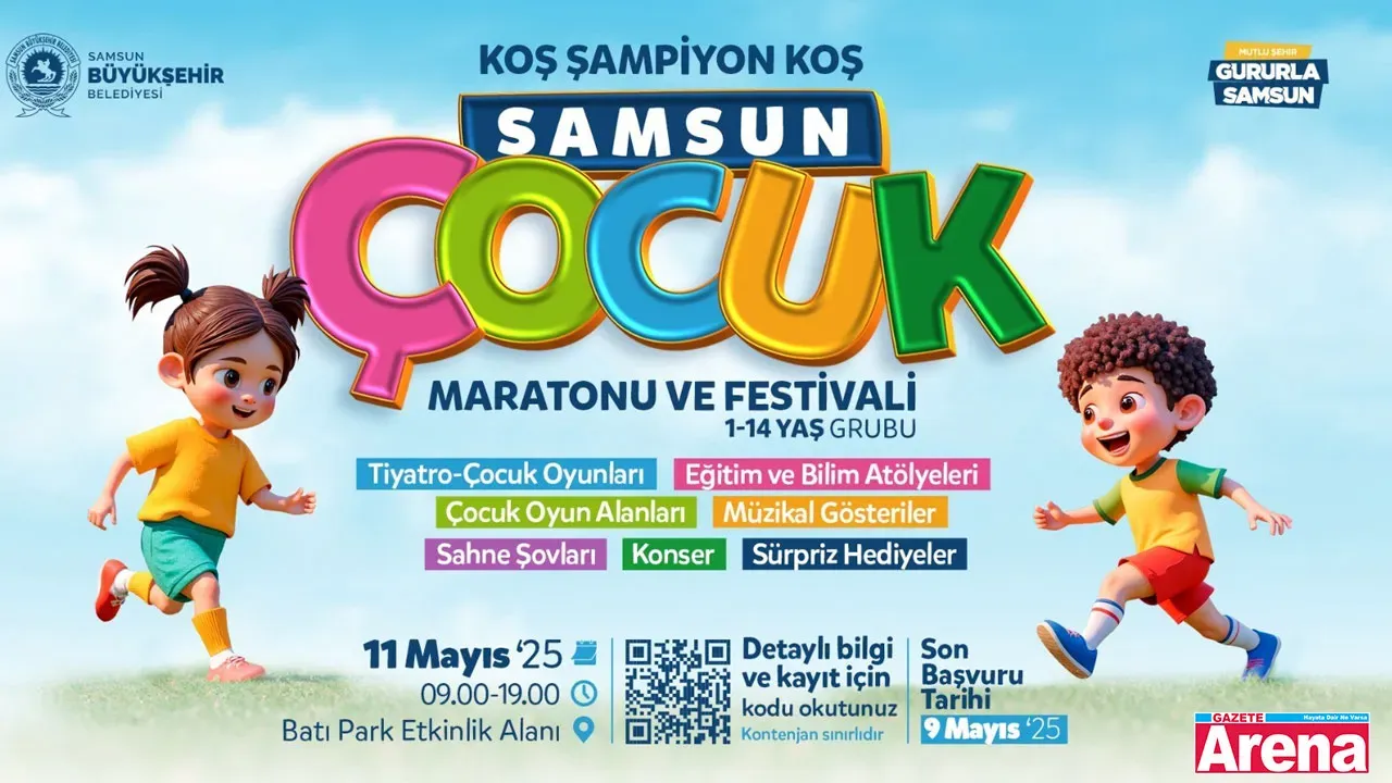“Koş Şampiyon Koş” sloganı ile düzenlenen Samsun Çocuk Maratonu ve Festivali, birçok farklı etkinlik ve atölye ile katılımcılarını bekliyor. Festivalde tiyatro gösterileri, çocuk oyunları, bilim atölyeleri, müzikal gösteriler ve sahne şovları gibi birbirinden renkli etkinlikler yer alacak. Çocuklar, hem eğlenceli vakit geçirecek hem de yeni beceriler kazanarak hayal güçlerini geliştirecekler. Aileler de bu neşeli ortamda çocuklarıyla birlikte keyifli anlar biriktirecek.