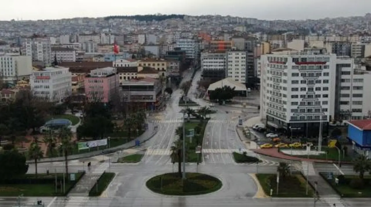 Binalar arasında sıkışmış, yaya ve araç trafiğiyle iç içe bir görünüm oluştu.
