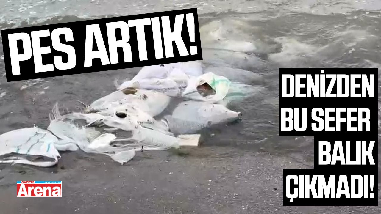 Denize bırakılan çuvallar sahilde tepki topladı.