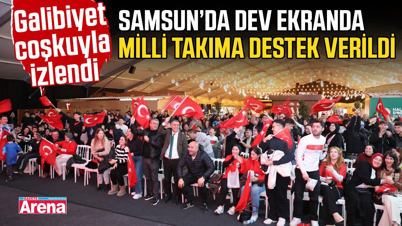 Samsun’da vatandaşlar, Türkiye-Romanya maçını dev ekrandan izleyerek milli takıma destek verdi. Ellerinde Türk bayraklarıyla meydanı dolduran halk, 90 dakika boyunca tezahüratlarla “Bizim Çocuklar”a moral verdi. A Milli Takım’ın sahadan 1-0 galip ayrılmasıyla birlikte meydanda büyük bir sevinç yaşandı. Vatandaşlar, galibiyeti alkış ve tezahüratlarla kutlayarak coşkuyu paylaştı.