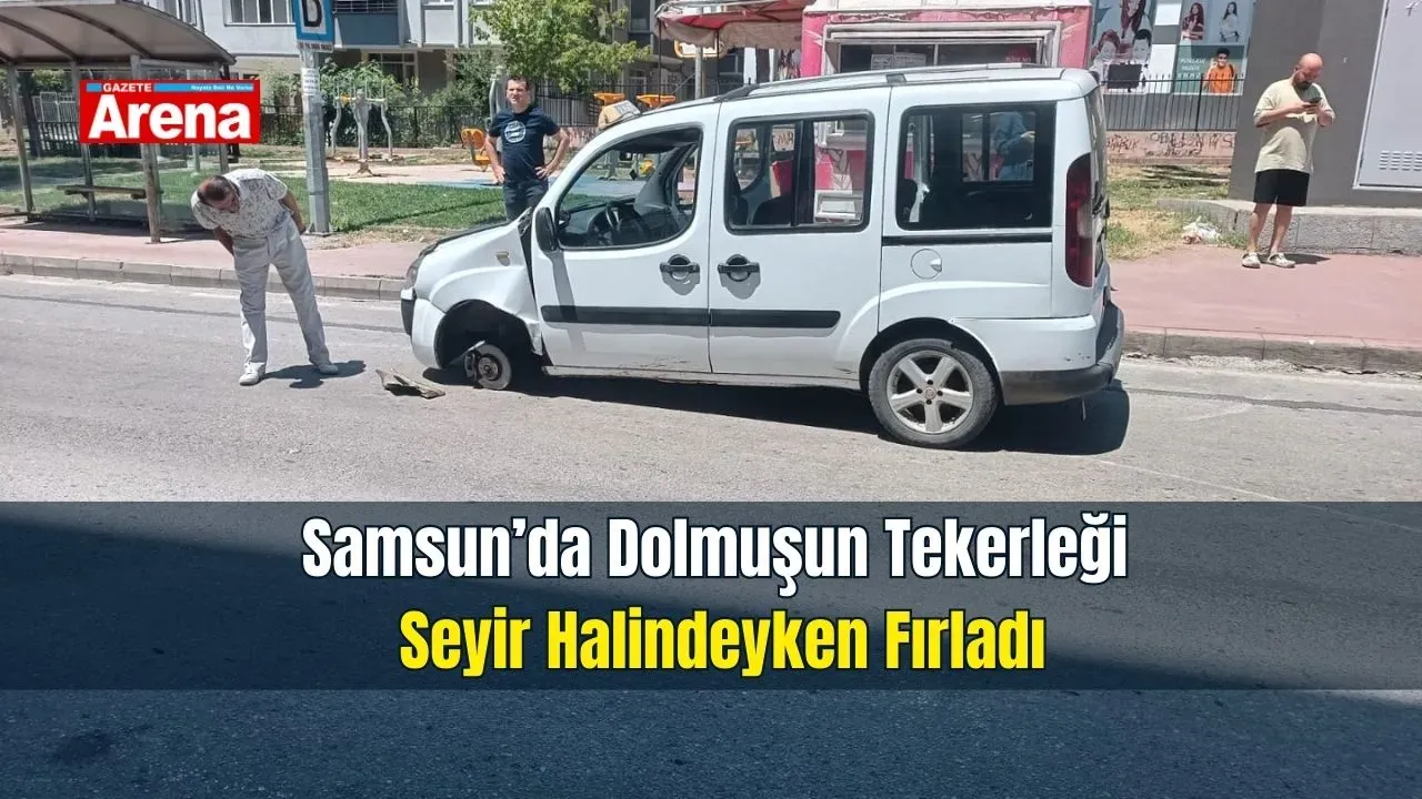 Samsun’da yolcu taşımacılığı yapan 2. hat dolmuşu, dün sabah saatlerinde seyir halindeyken büyük bir tehlike atlattı. Gazi Ethem Paşa Bulvarı üzerinde virajı döndüğü sırada, dolmuşun sol ön tekeri yerinden çıktı ve yola savruldu.