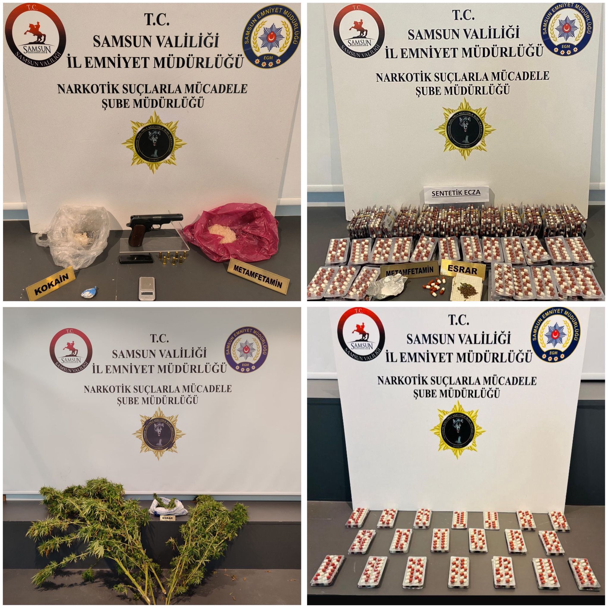 Samsun İl Emniyet Müdürlüğü ekipleri tarafından yürütülen çalışmalarda, dört ilçede gerçekleştirilen operasyonlarda yasaklı madde ve ruhsatsız silahlar ele geçirildi. Samsun İl Emniyet Müdürlüğü’ne bağlı Narkotik Suçlarla Mücadele Şube Müdürlüğü ekiplerince, yasaklı madde ticareti ve kullanımının önlenmesine yönelik çalışmalar aralıksız sürdürülüyor.