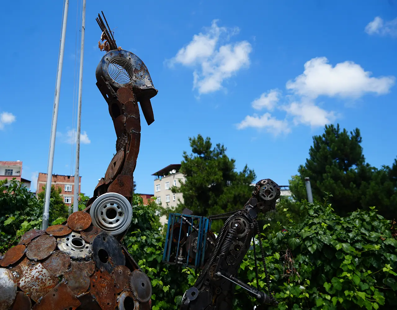 Samsun’da geri dönüştürülmüş metallerden oluşturulan heykeller, şehre estetik bir dokunuş kazandırırken aynı zamanda çevre bilinci ve atık yönetimi konusunda güçlü bir mesaj veriyor. Samsun Büyükşehir Belediyesi’nin desteğiyle yürütülen projede, çöp olarak görülen hurda malzemeler birer sanat eserine dönüştü.