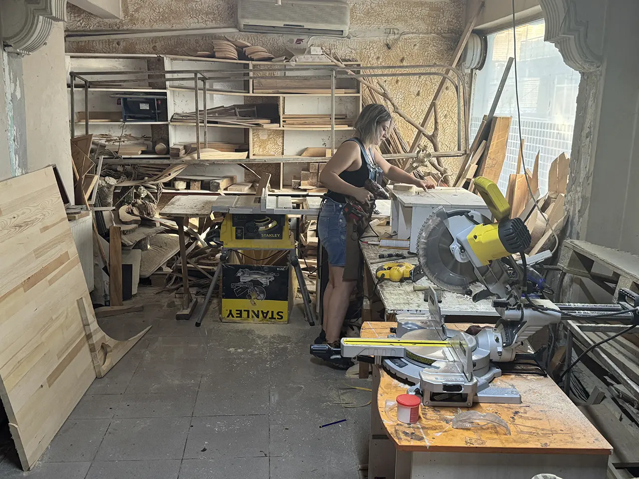 Yaklaşık 7 yıldır marangozluk yapan Bahar Kuru, zamanla bireysel mobilya siparişlerinden çıkıp anahtar teslim iş yerleri hazırlamaya başladı. Şu anda birçok kişi için özgün tasarımlar üretiyor.