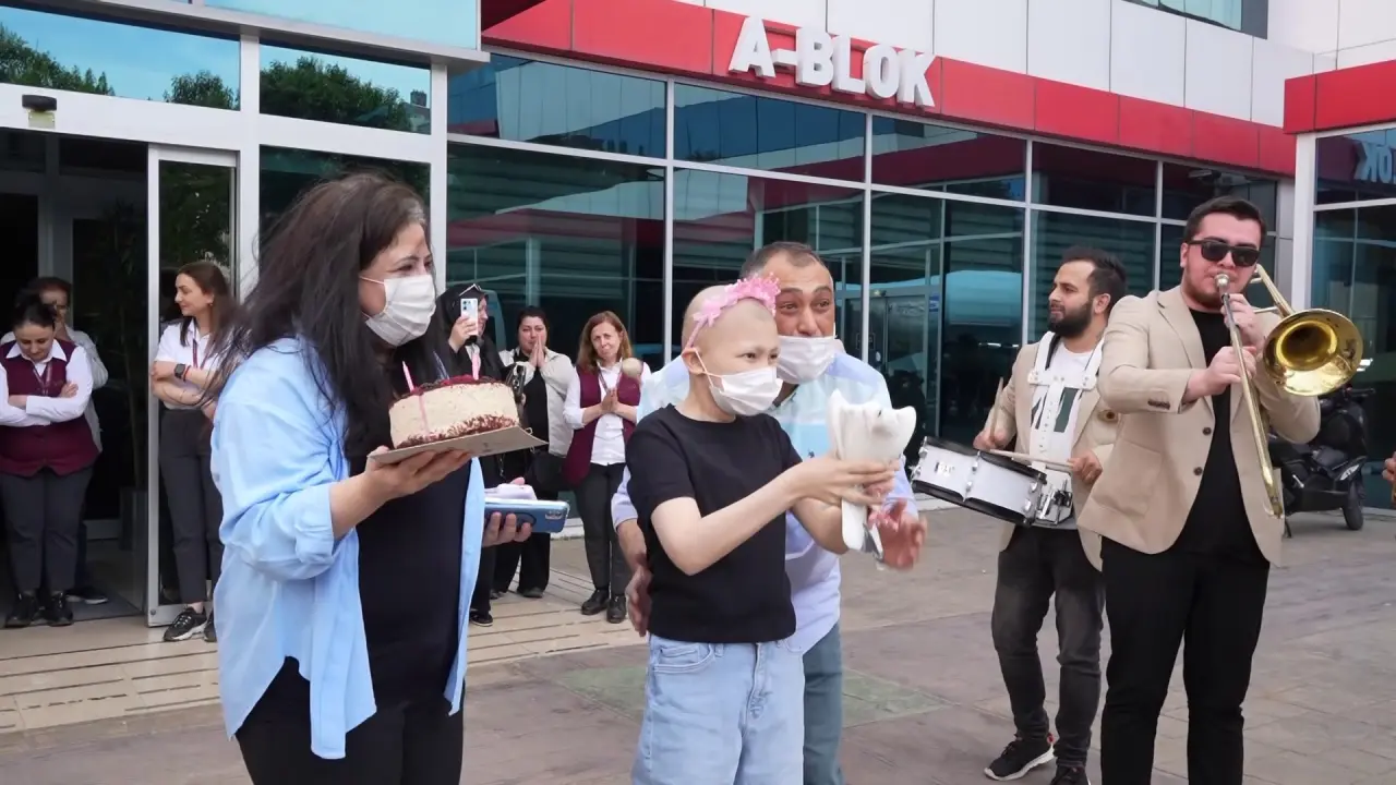 Samsun’da yaşayan 12 yaşındaki Benay Sayın, geçen yıl baş ağrısı ve kusma şikâyetiyle başvurduğu hastanede çocukluk çağı beyin tümörlerinden biri olan medulloblastom teşhisiyle tedavi altına alındı. Zorlu tedavi süreci, ameliyat, radyoterapi ve kemoterapinin ardından sona erdi. Minik Benay, son kemoterapisini aldıktan sonra ailesi ve hastane personeli tarafından düzenlenen etkinlikle bando eşliğinde uğurlandı.
