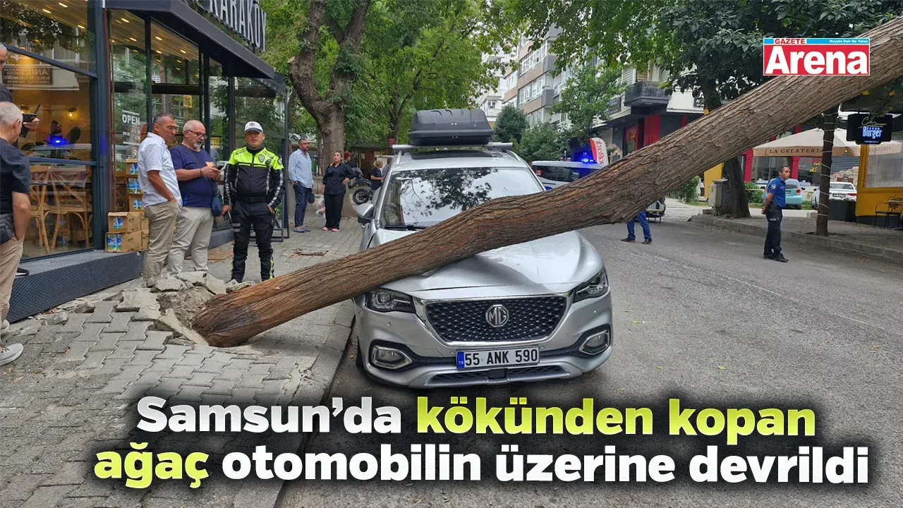 Samsun’un İlkadım ilçesinde kökünden kopan bir akasya ağacı, park halindeki otomobilin üzerine devrilerek maddi hasara yol açtı.