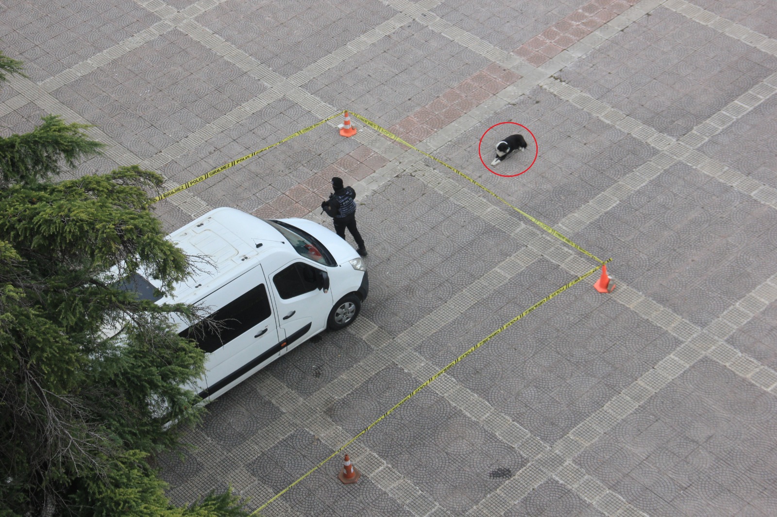 Meydanda görev yapan polis ekiplerinin güvenlik amacıyla çevresine şerit çektiği alanda siyah-beyaz bir köpek, güvenlik şeridinin dışında yere uzandı. Daha önce sık sık polislerin yanına kadar giden köpek, bu kez şeridi fark ederek alanın içine girmedi.