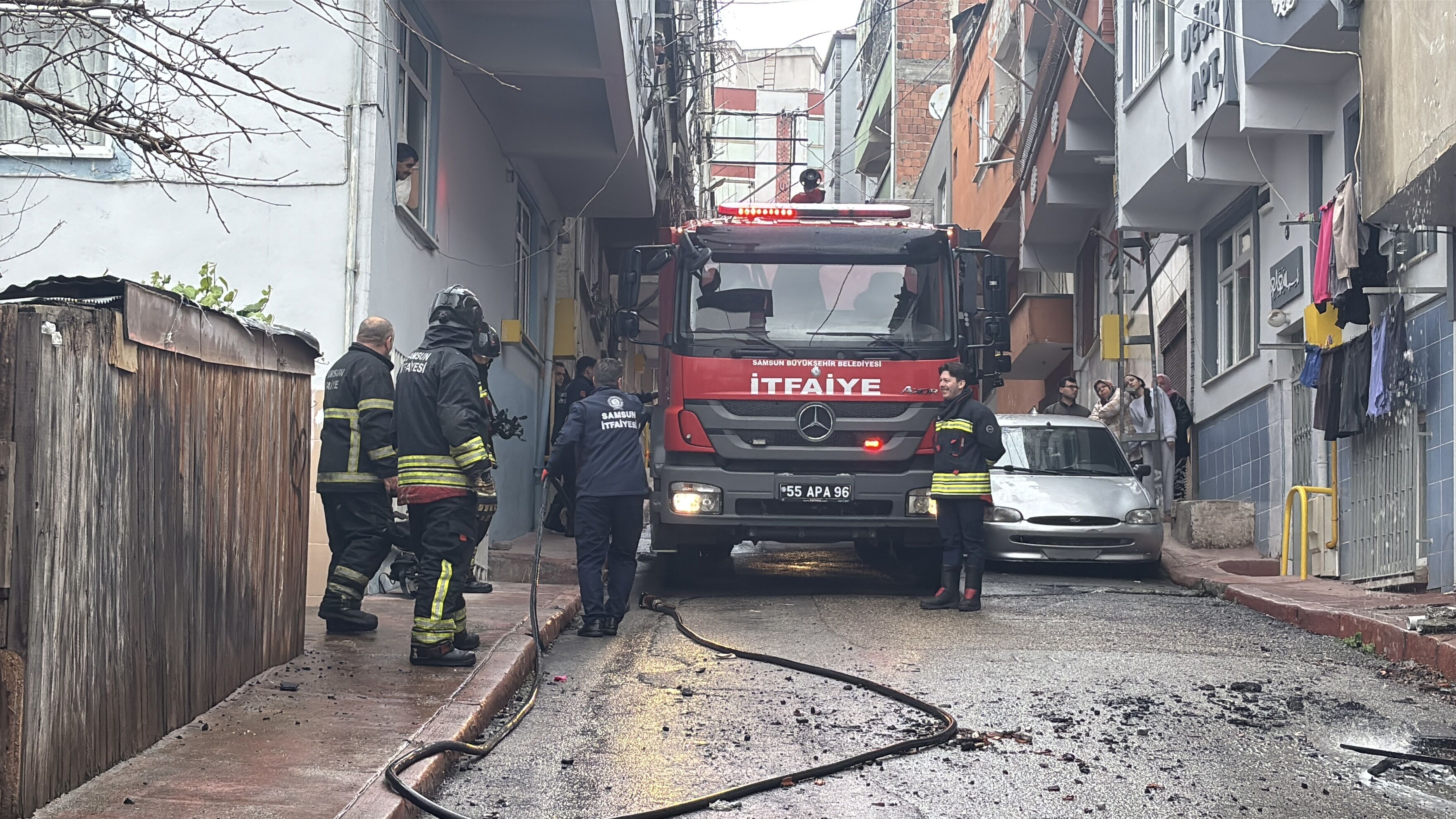 Yangın sırasında yan binada bulunan vatandaşlar, evlerindeki hortumlarla alevlere müdahale etmeye çalıştı. Kısa sürede olay yerine ulaşan itfaiye ekipleri, yangının büyümesini engelleyerek kontrol altına aldı.