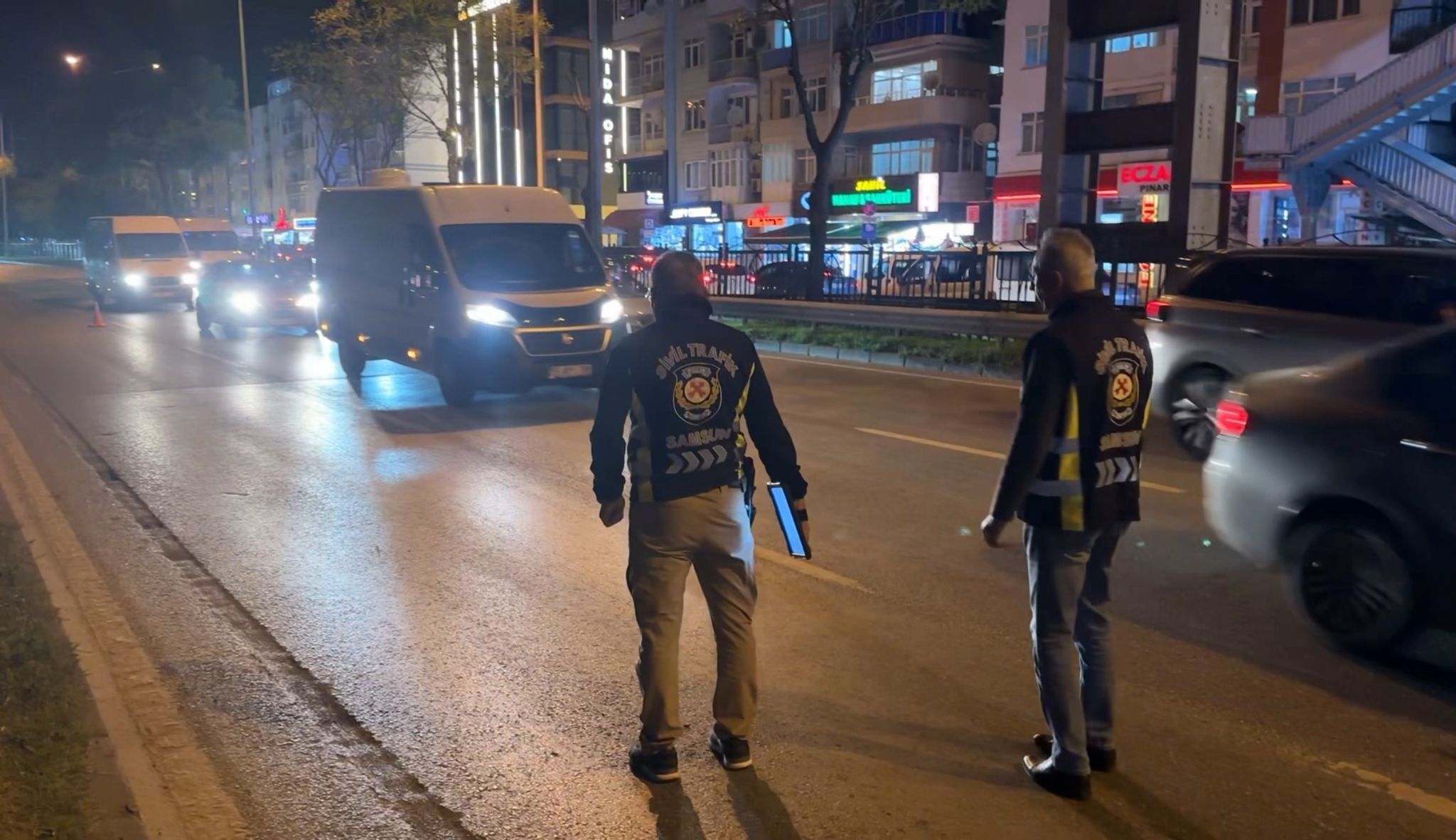 Atakum ilçesinde korsan taksi denetimleri gerçekleştiren Samsun Emniyet Müdürlüğü ekipleri, Denizevleri Mahallesi Atakum Mesleki ve Teknik Anadolu Lisesi önünde uygulama noktası oluşturdu. Yapılan denetimlerde, mobil uygulama üzerinden müşteri aldığı tespit edilen korsan taksiler tek tek durdurularak kontrol edildi.