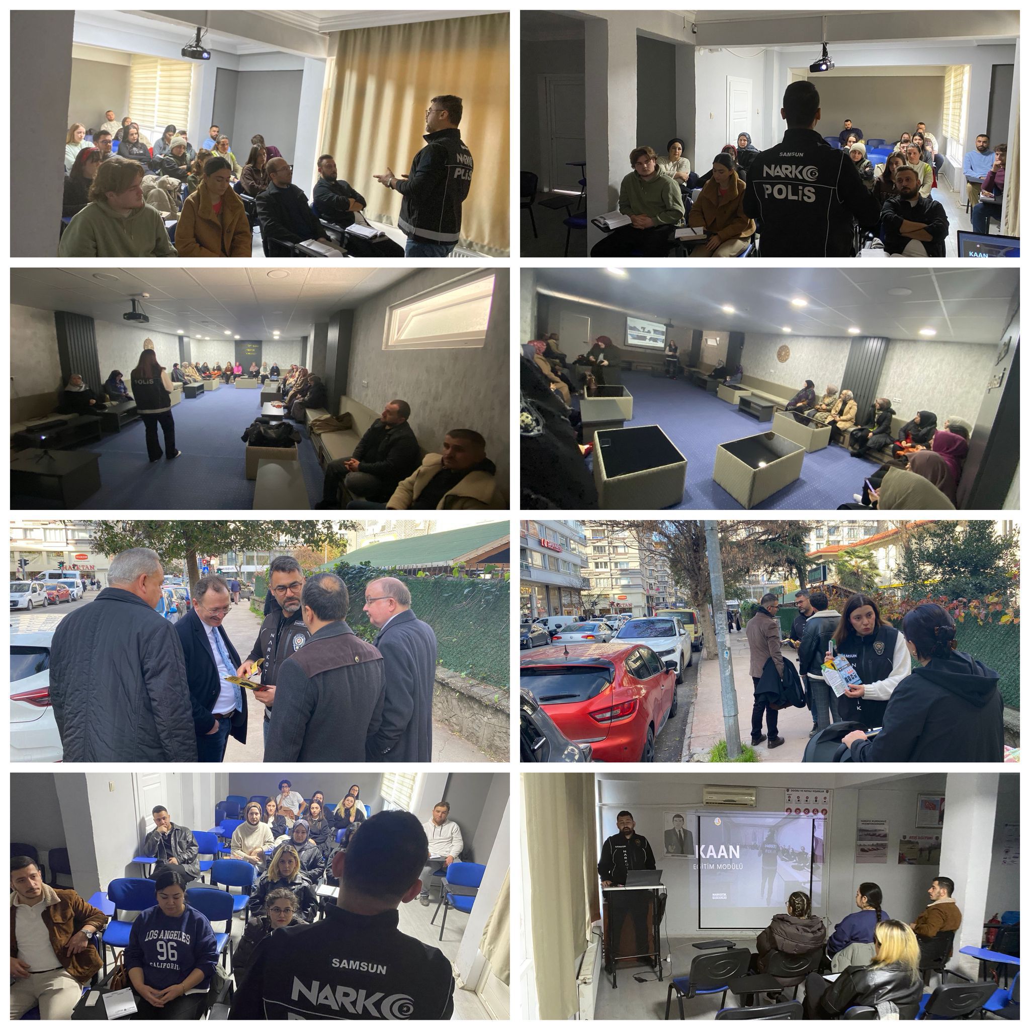Samsun İl Emniyet Müdürlüğü Narkotik Suçlarla Mücadele Şube Müdürlüğü personeli, uyuşturucuyla mücadele kapsamında toplumun farklı kesimlerine yönelik bilgilendirme ve farkındalık çalışmaları gerçekleştirdi.