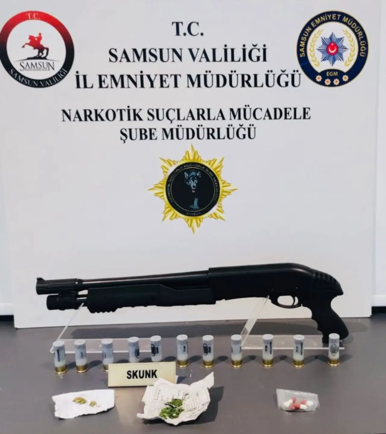 Samsun İl Emniyet Müdürlüğü Narkotik Suçlarla Mücadele ve Asayiş Şube ekipleri, İlkadım ilçesinde yaptıkları operasyonla suç unsurlarına el koydu. Belirlenen iş yerinde gerçekleştirilen aramada silah ve uyuşturucu maddeler bulundu.