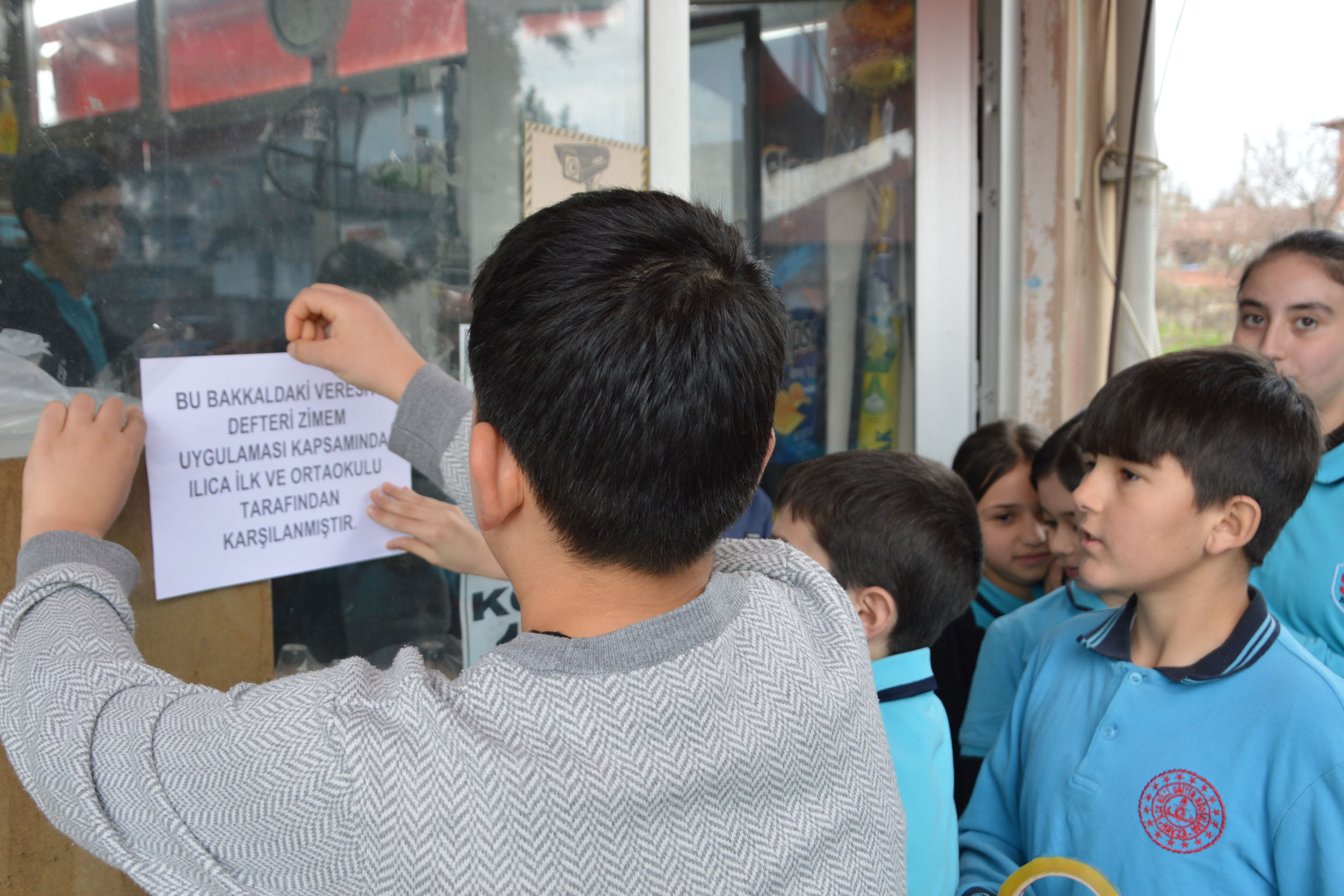 Veresiye defterindeki borçları kapatan öğrenciler, bakkalın camına "Bu bakkaldaki veresiye defterinde bulunan borçlar zimem uygulaması kapsamında Ilıca İlkokul ve Ortaokulu tarafından karşılanmıştır" yazılı kağıt yapıştırdı.