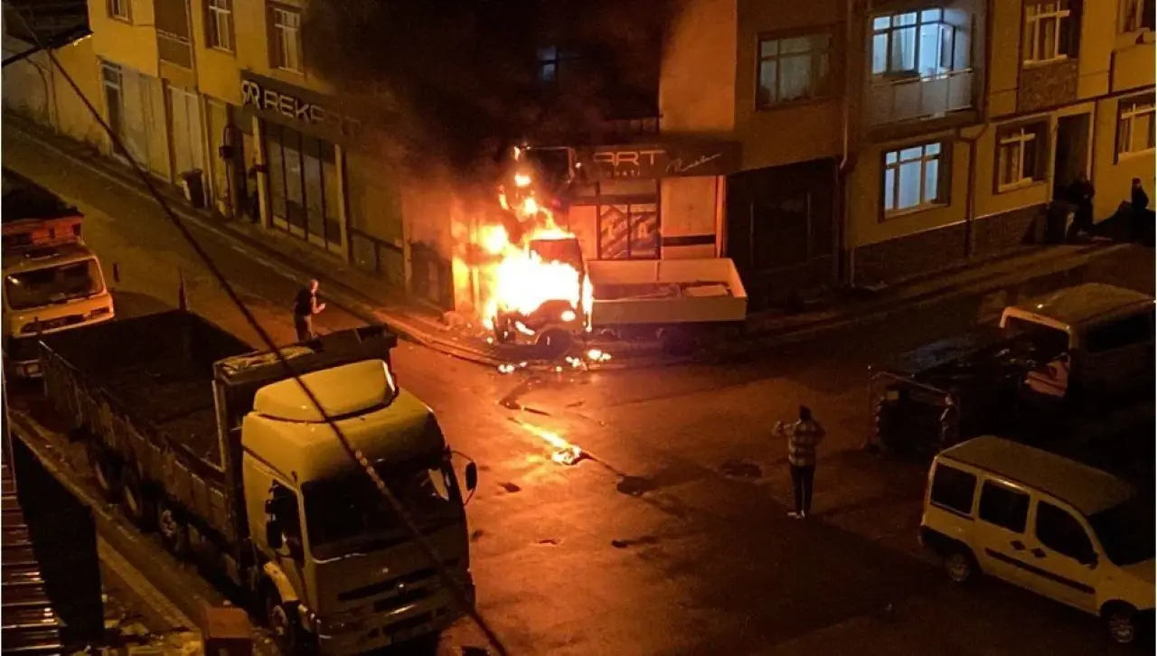 Samsun'da Park Halindeki Kamyonet Alev Alev Yandı