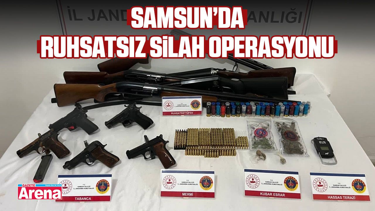 Samsun’un Salıpazarı ilçesinde jandarma ekiplerince düzenlenen operasyonda ruhsatsız silahlar ve bir miktar uyuşturucu madde ele geçirilirken, 3 şüpheli hakkında adli işlem başlatıldı.