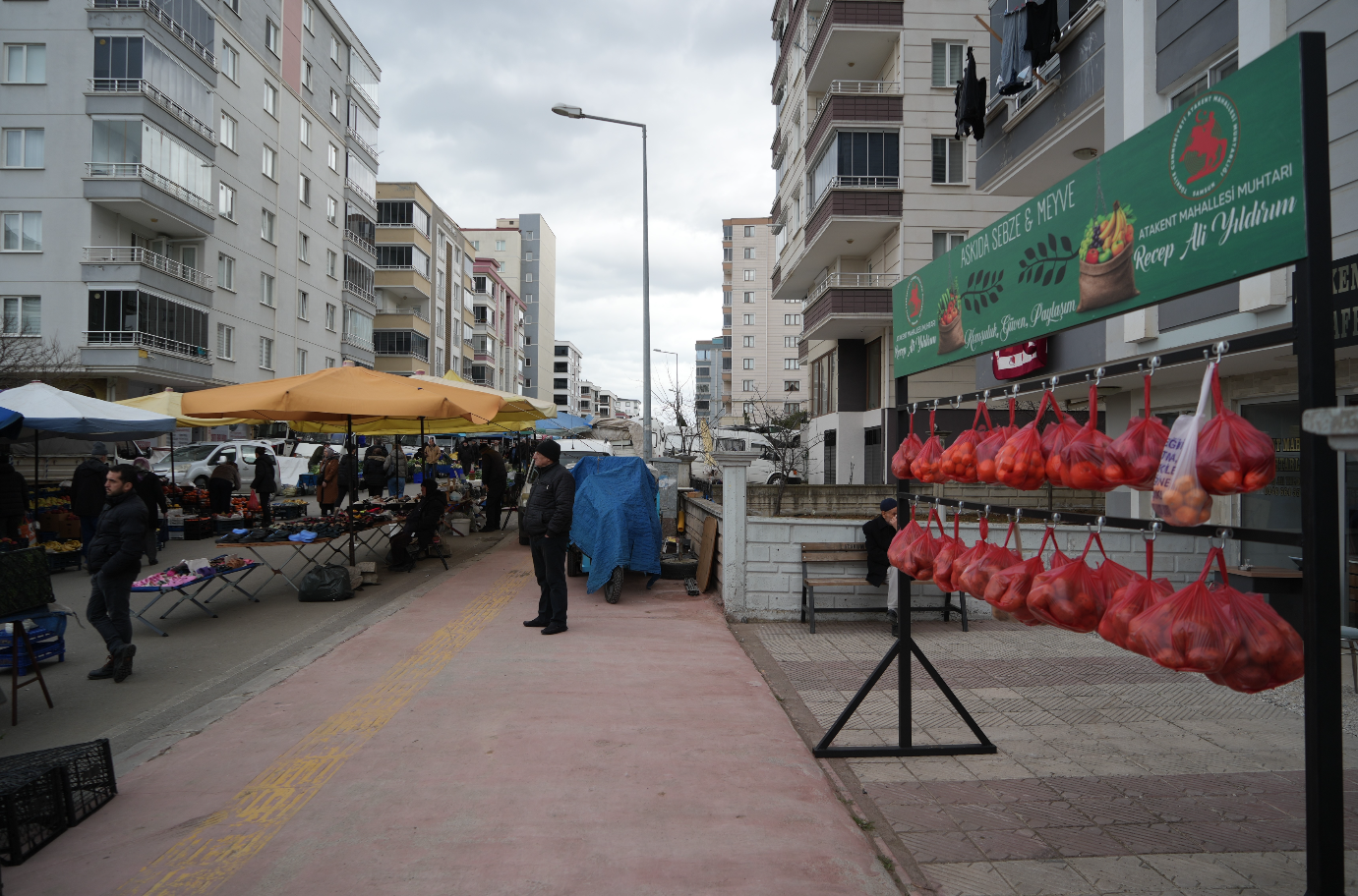 Samsun'un Atakum ilçesine bağlı Atakent Mahallesi'nde ihtiyaç sahiplerinin yüzünü güldüren örnek bir sosyal dayanışma projesi hayata geçirildi. Atakent Mahallesi Muhtarı Recep Ali Yıldırım tarafından başlatılan "Askıda Sebze ve Meyve Projesi" mahallede uygulanmaya başlandı. Muhtarlık binasının önünde, halk pazarının kurulduğu günlerde uygulamaya konulan proje kapsamında, durumu iyi olan vatandaşlar pazardan aldıkları sebze ve meyveleri kurulan stantta askıya bırakıyor. İhtiyaç sahibi aileler ise herhangi bir ücret ödemeden stanttaki sebze ve meyvelerden istedikleri kadar alabiliyor.