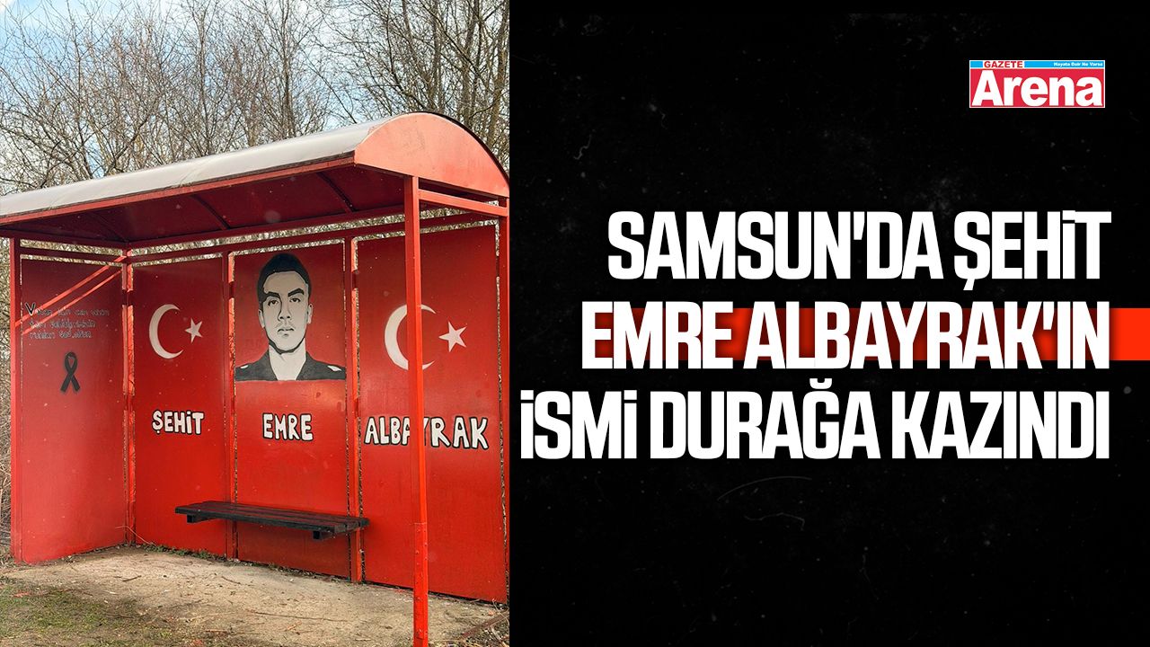 Samsun'un Ladik ilçesinde daha önce bir otobüs durağını Samsunspor renklerine boyayan Kaman ailesi, bu kez şehit Polis Memuru Emre Albayrak'ın babaevine giden yoldaki otobüs durağını şehidin anısına kırmızı-beyaza boyayıp, durağa şehidin ismini yazdı.