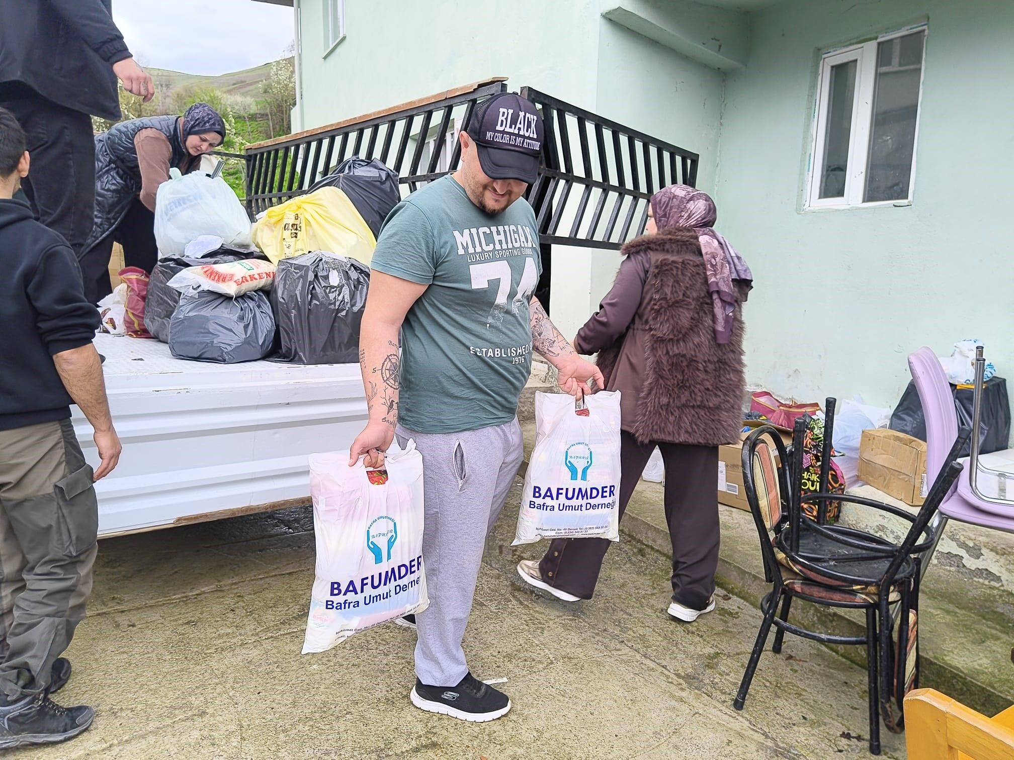 Bafra ve Alaçamlı gönüllü kadınların katkılarıyla mahalleye gıda, kırtasiye, beyaz eşya, giysi, ev eşyası, mutfak malzemeleri, soba, medikal malzemeler ve temizlik ürünlerinden oluşan 3 kamyonluk temel ihtiyaç yardımı ulaştırıldı. Malzemeler, yalnızca mahalle meydanında değil, iletişim güçlüğü yaşayan vatandaşların evlerine kadar ulaştırılarak doğrudan teslim edildi.