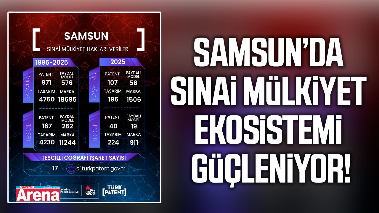 Samsun’da sınai mülkiyet alanında önemli bir gelişim yaşanıyor. Türk Patent ve Marka Kurumu'nun kuruluşundan bu yana kentten yapılan başvurular dikkat çekici seviyelere ulaştı. Özellikle marka, patent, faydalı model ve tasarım alanlarında artan başvuru sayıları, Samsun’un girişimcilik ve Ar-Ge potansiyelini gözler önüne seriyor.