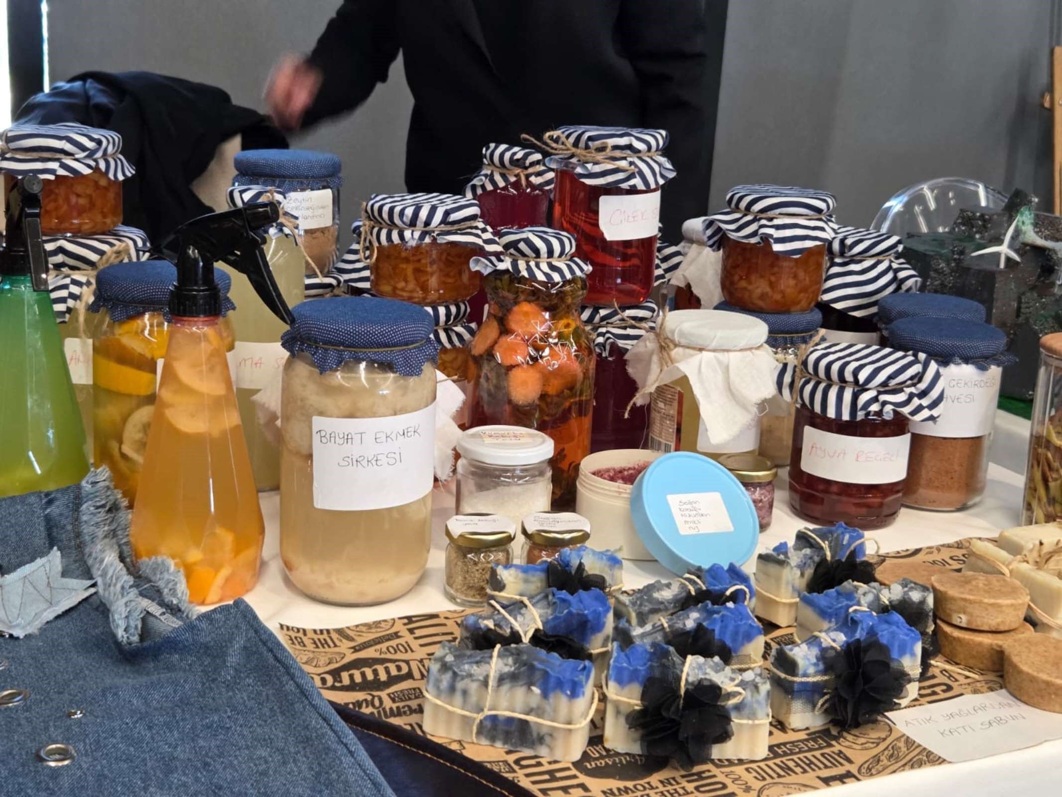 Programda rujun yanı sıra atık gıda maddelerinden geri dönüştürülen yüzlerce farklı ürün sergilenirken, çöpe gidecek atıkların yeniden ekonomiye ve kullanıma kazandırılması vatandaşlar tarafından olumlu karşılandı.