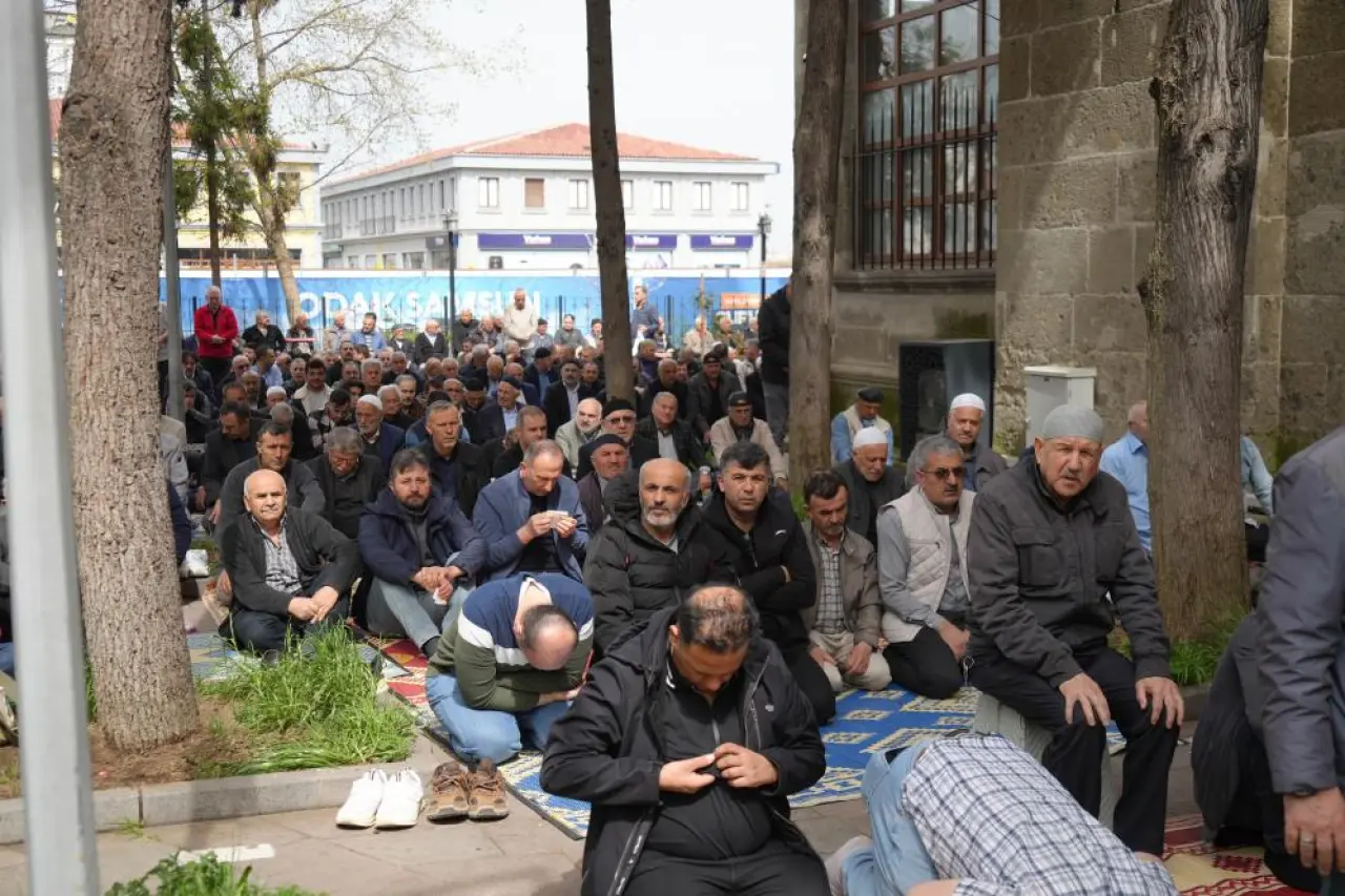 Ramazan’ın son Cuma namazını eda etmek için büyük ilgi gösteren Samsunlular, Büyük Cami’yi doldurdu. Cami içi ve avlu, cemaatle tıka basa dolarken, bazı vatandaşlar namazlarını avlu dışında, cadde ve sokaklarda seccade sererek kıldı.