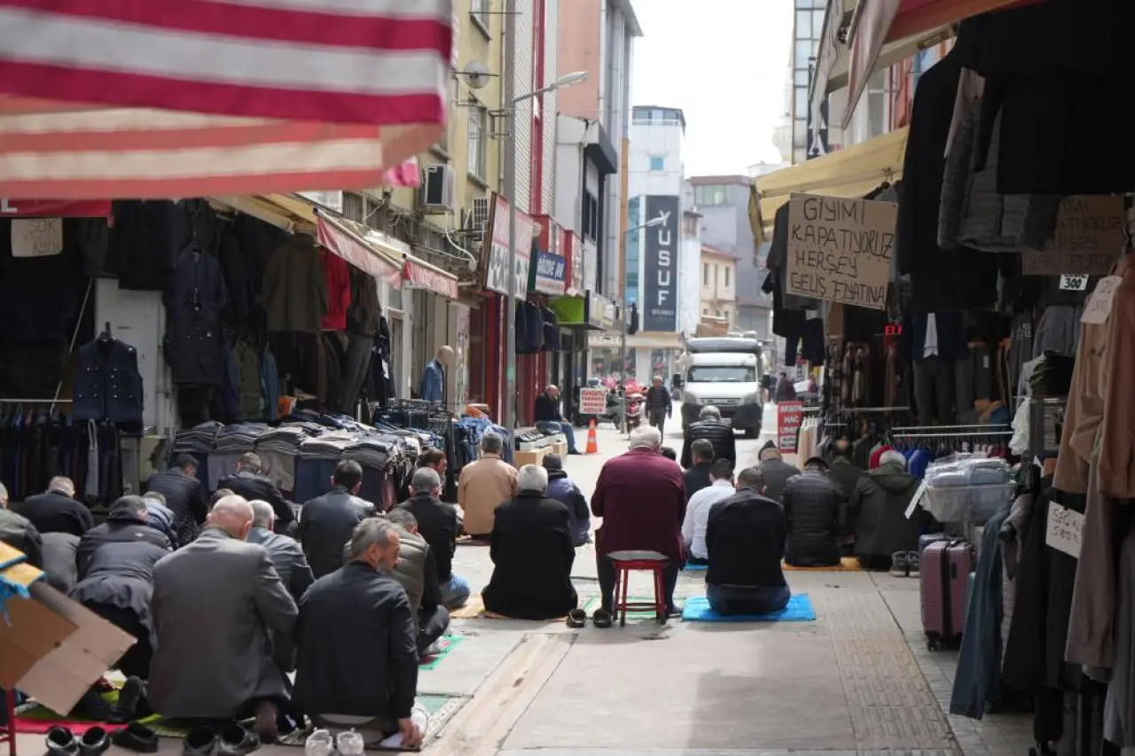 Arastalar arasında yer alan mescitlerde de cemaatin yoğunluğu nedeniyle yer bulamayan vatandaşlar, namazlarını cadde ve sokak aralarına koydukları seccadelerde kıldı. Bazı yollar araç geçmeyecek şekilde kapanırken, camiye gitmeye çalışan vatandaşlar seccadeleriyle sokaklarda yer buldu.