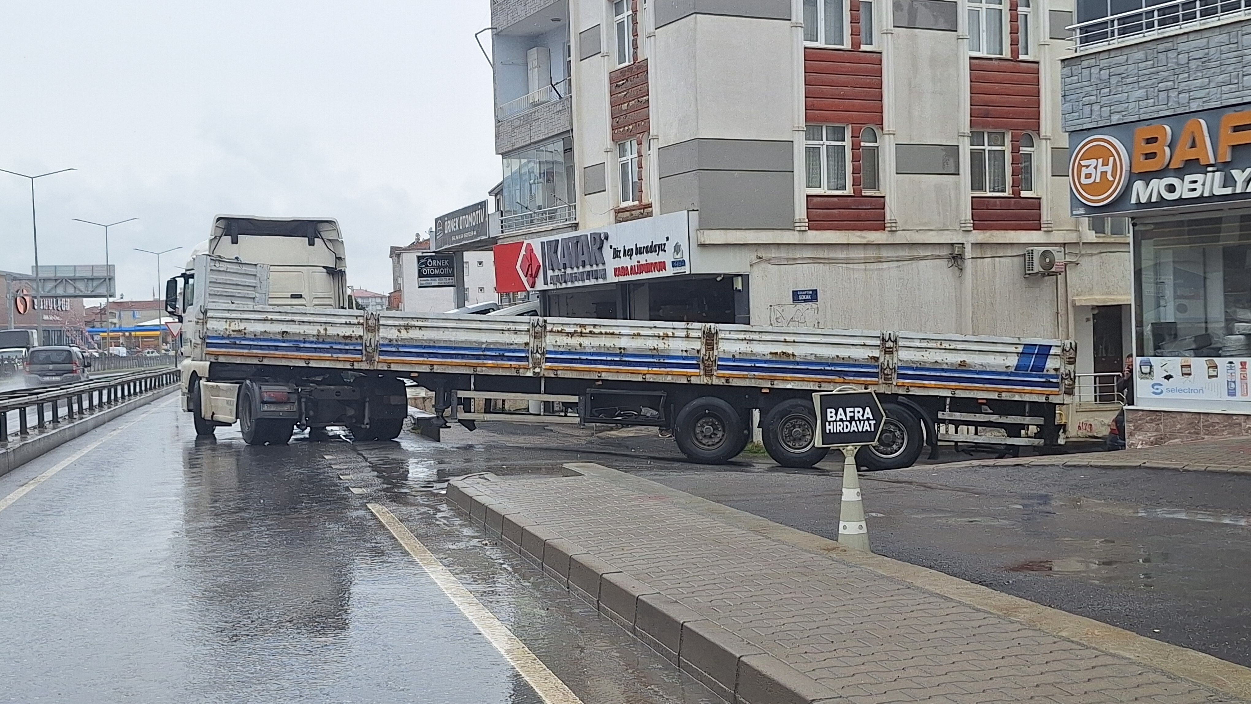Samsun'un Bafra ilçesinde tır sürücüsü, meydana gelen kzada sıkışan dorseyi kurtarmak isterken yaralandı. Alınan bilgiye göre, M.E. (55) idaresindeki 38 AIP 913 plakalı tır, Samsun-Sinop kara yolu Kavakpınar Mahallesi'nde yük boşalttıktan sonra ana yola çıkarken önce kaldırıma, ardından park halindeki bir otomobile çarptı.