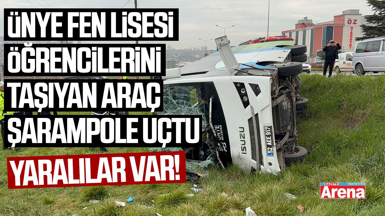 İstanbul'da düzenlenen robot yarışmasına katılan Ünye Fen Lisesi heyetini taşıyan 52 AEE 917 plakalı Ünye Belediyesi'ne ait midibüs, sabah saat 06.45 sıralarında Samsun’un İlkadım ilçesi Kıran Mahallesi çevre yolunda kaza yaptı. Sürücüsünün direksiyon hakimiyetini kaybetmesi sonucu kontrolden çıkan araç şarampole devrildi.