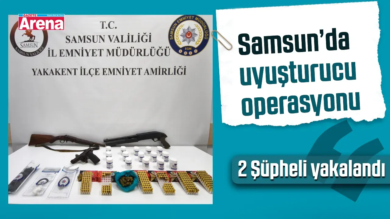 Samsun’un Atakum ilçesinde polis ekiplerince düzenlenen uyuşturucu operasyonunda 2 şüpheli yakalandı. Operasyonda sentetik ecza hapı, uyuşturucu madde ve ruhsatsız silahlar ele geçirildi.
