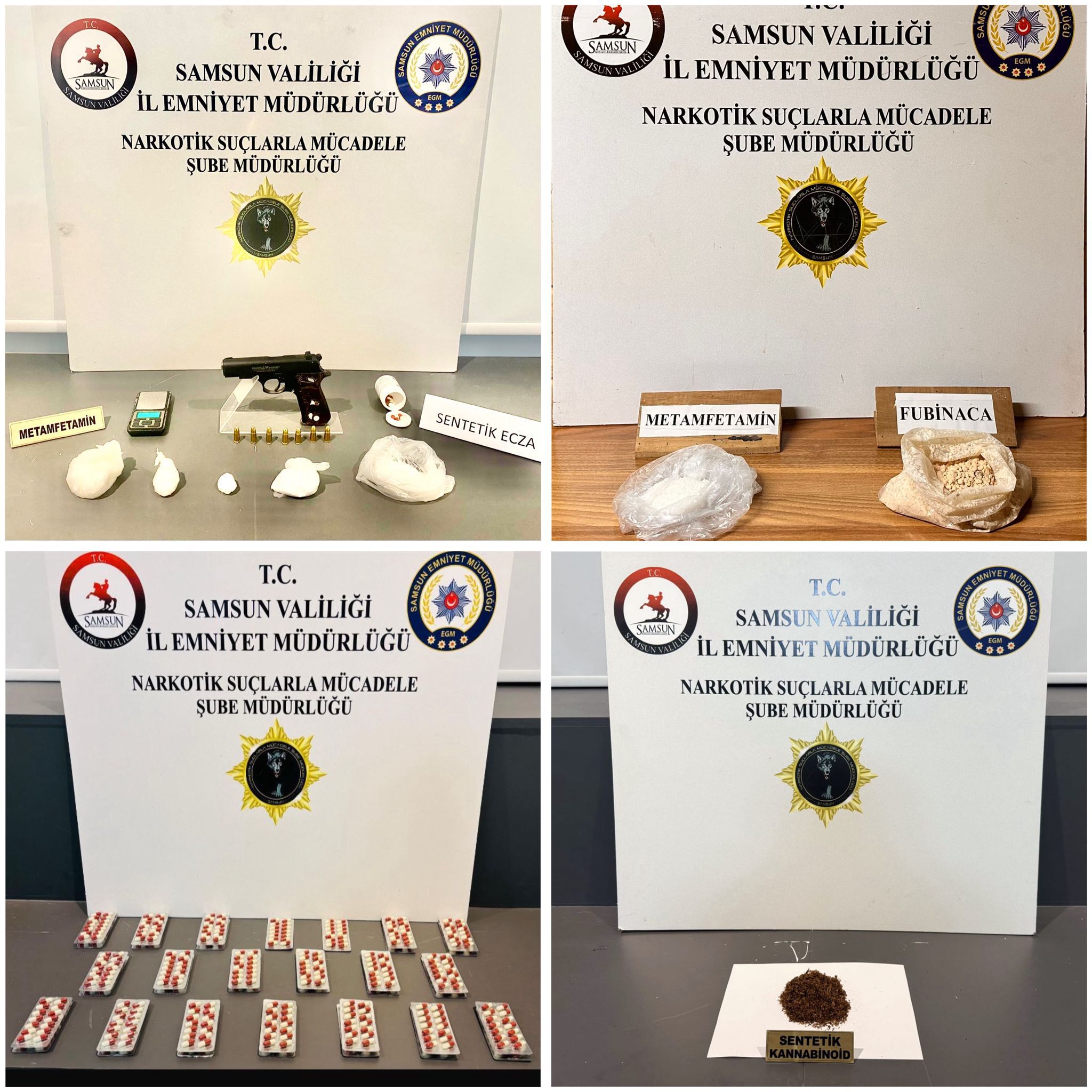 Samsun İl Emniyet Müdürlüğü Narkotik Suçlarla Mücadele Şube Müdürlüğü ekipleri, İlkadım, Canik, Tekkeköy ve Havza ilçelerinde uyuşturucu madde ticareti ve kullanımını önlemeye yönelik geniş kapsamlı bir çalışma yürüttü.