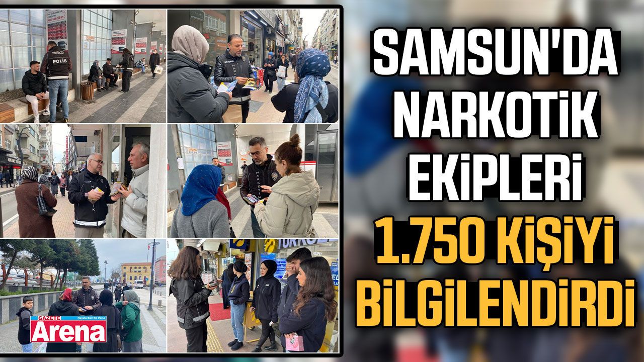 Samsun İl Emniyet Müdürlüğü Narkotik Suçlarla Mücadele Şube Müdürlüğü ekipleri, uyuşturucuyla mücadele kapsamında gerçekleştirdiği bilinçlendirme faaliyetlerini sürdürdü. İlkadım ilçesinde farklı noktalarda düzenlenen çalışmalarla toplam 1.750 vatandaşa ulaşan ekipler, gençlerin ve ailelerin dikkatini uyuşturucunun zararlarına çekti.