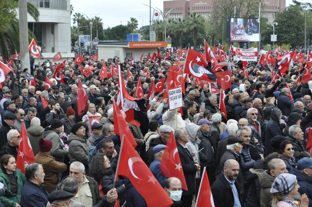 Samsun’daki mitinge, soğuk hava ve yağmura rağmen on binlerce yurttaş katılım sağladı. 7’den 70’e, partili-partisiz vatandaş alanı doldurdu. Girişlerde, Ekrem İmamoğlu’nun özgürlüğü için CHP Genel Merkezi’nin başlattığı kampanya kapsamında imza stantları kuruldu ve yoğun destek toplandı.