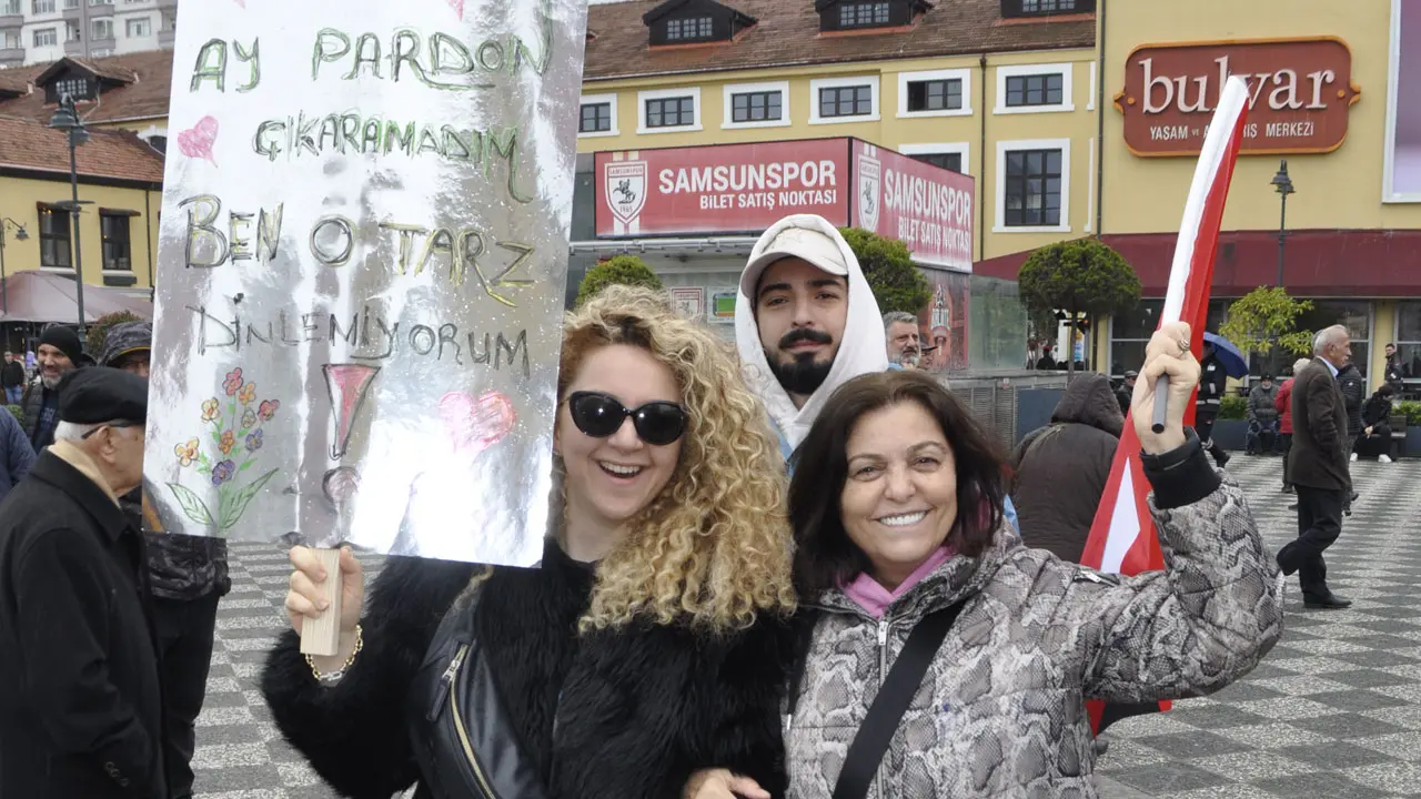 Samsun Cumhuriyet Meydanı miting sırasında tıklım tıklım dolarken, meydana sığmayan kalabalık mitingi yan sokaklardan ve meydanın karşısındaki alanlardan takip etti.