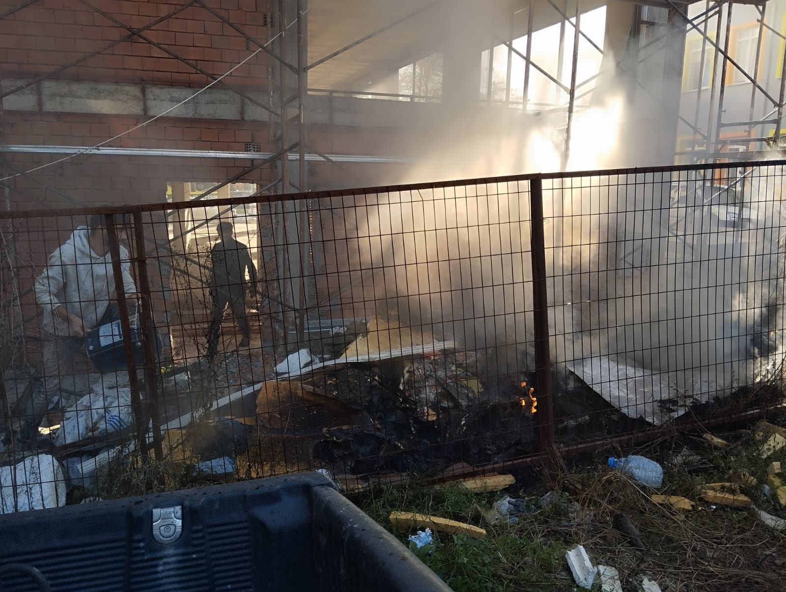O sırada inşaatta bulunan işçiler, kendi imkanlarıyla yangına müdahale etmeye çalıştı. Ancak çabalar yeterli olmayınca itfaiye ekipleri olay yerine çağrıldı. Yangın, itfaiye ekiplerinin müdahalesiyle kontrol altına alınırken, yükselen dumanlar ilçenin birçok noktasından görüldü. Şans eseri yangında can kaybı veya yaralanma yaşanmadı.