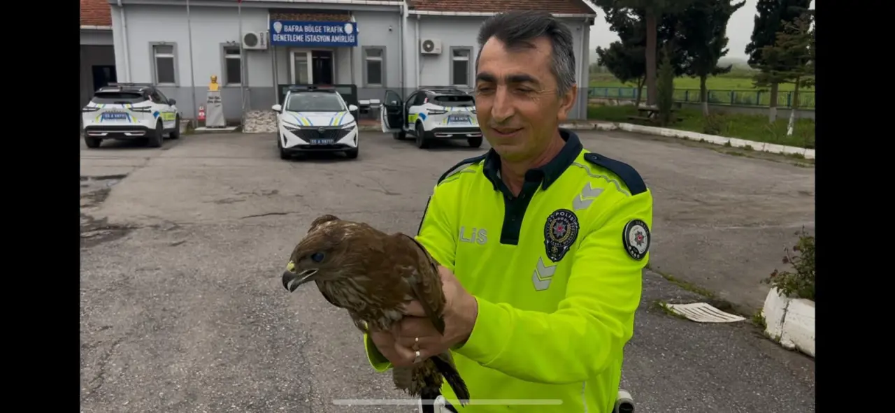 Samsun'da duyarlılık örneği sergileyen trafik polisleri, yaralı kuşa ilk müdahaleyi olay yerinde gerçekleştirdi. Durumu hızla ilgili birimlere bildiren ekipler, Doğan kuşunu güvenli şekilde koruma altına aldı.