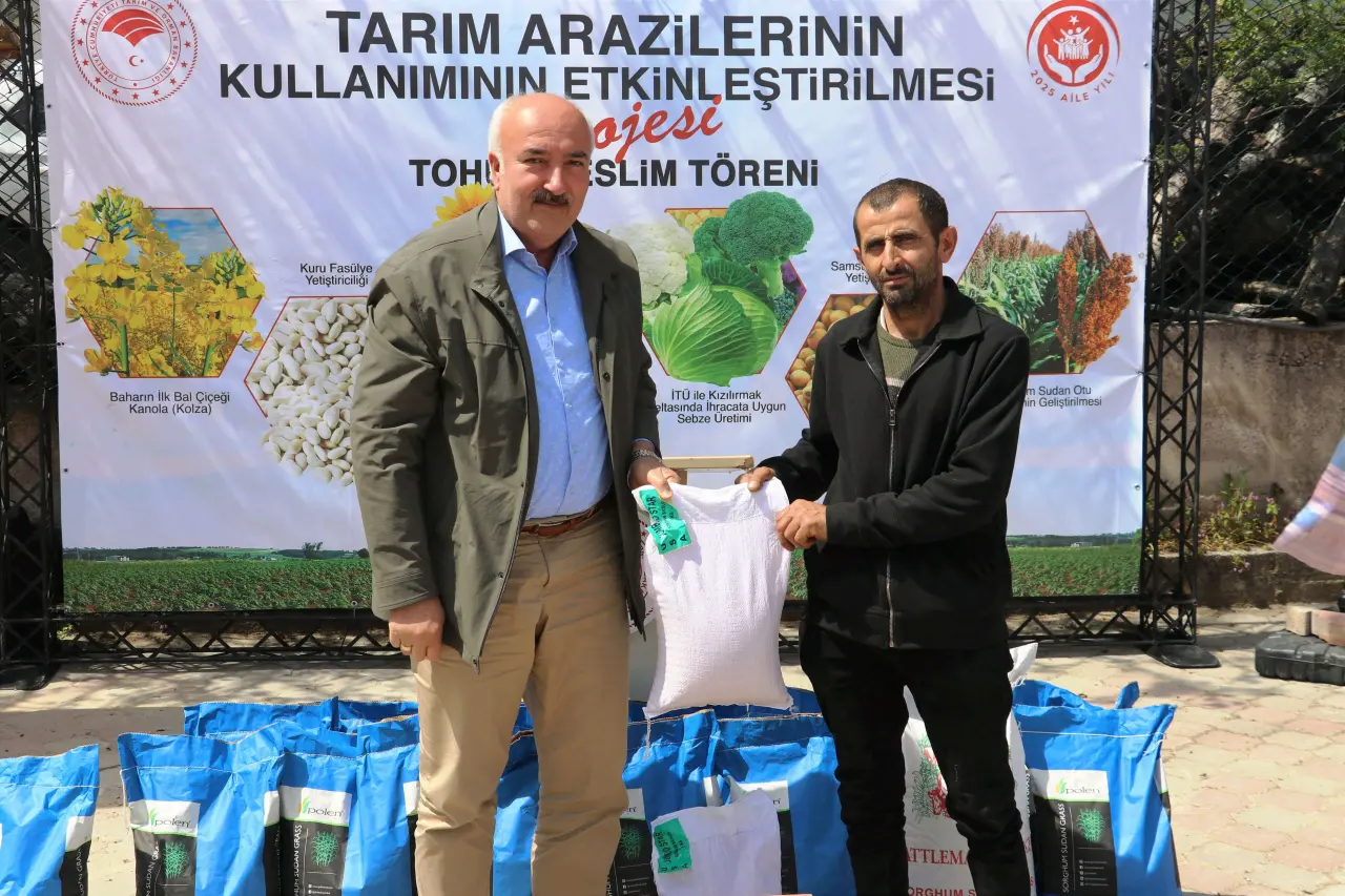 Samsun’un 19 Mayıs ve Ladik ilçelerinde, Tarım ve Orman Bakanlığı’nın desteklediği "Tarım Arazilerinin Kullanımının Etkinleştirilmesi Projesi" kapsamında önemli bir adım atıldı. “Sorgum Sudan Otu Melezi Üretiminin Yaygınlaştırılması Projesi” doğrultusunda üreticilere tohum desteği sağlandı. Tohum teslim törenleri; 19 Mayıs Kaymakamı İbrahim Civelek, Samsun İl Tarım ve Orman Müdürü İbrahim Sağlam, Tarım Kredi Kooperatifleri Samsun Bölge Müdür Yardımcısı Ahmet Karagaytan, Samsun Ziraat Odası Başkanı Hasan Tütüncü ve çok sayıda üreticinin katılımıyla gerçekleştirildi.