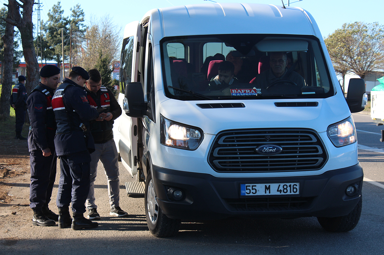 Samsun’un Bafra ilçesinde yeni yıl öncesinde alınan güvenlik tedbirleri kapsamında yol emniyet ve kontrol faaliyeti yapıldı. Samsun-Sinop kara yolu Lengerli Kavşağı’nda oluşturulan uygulama noktasında, Bafra İlçe Jandarma Komutanlığı ekipleri ile İl Göç İdaresi Müdürlüğü personeli denetim gerçekleştirdi.