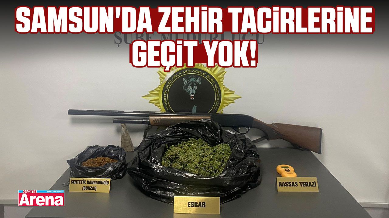 Samsun’un Çarşamba ilçesinde narkotik ekipleri tarafından düzenlenen operasyonda uyuşturucu madde ele geçirildi. Samsun Emniyet Müdürlüğü Narkotik Suçlarla Mücadele Şube Müdürlüğü ekiplerinin yürüttüğü çalışmalar kapsamında durdurulan araç ve bağlantılı ikamet adresinde yapılan aramalarda 448,64 gram esrar, 94,50 gram sentetik kannabinoid (bonzai), 1 adet ruhsatsız tüfek ve 1 adet hassas terazi bulundu.