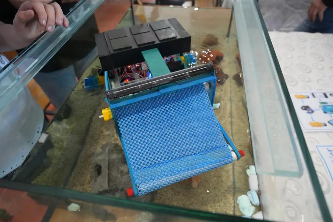 Atakum Mesleki ve Teknik Anadolu Lisesi öğrencileri Beytullah Arslan, Yunus Emre Duran, Yiğit Aktürk ve Furkan Osman Özbek’in danışman öğretmenleri Sezai Oğulluk ve Güven Şimşek rehberliğinde hayata geçirdiği deniz aracı, konveyör sistemiyle deniz yüzeyindeki atıkları topluyor. Güneş enerjisiyle çalışan araç, cep telefonları üzerinden Bluetooth bağlantısıyla kontrol edilebiliyor ve otonom olarak çalışabiliyor.
