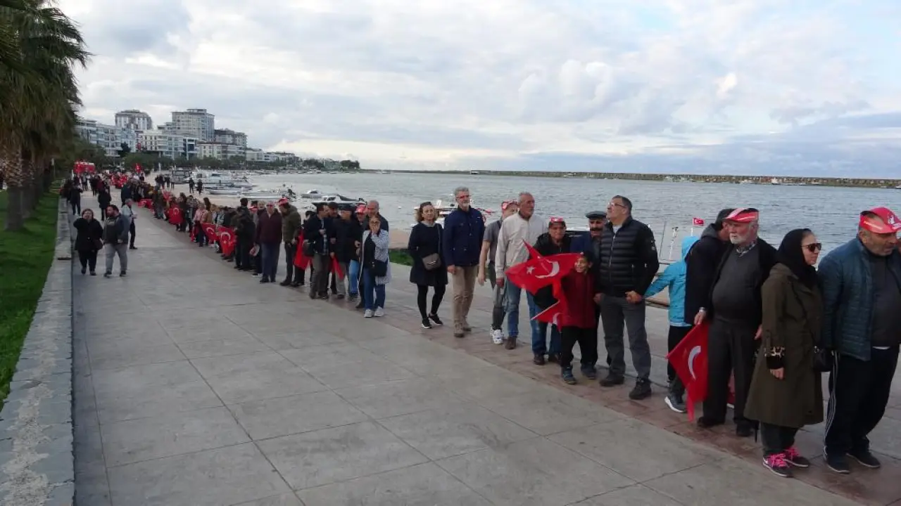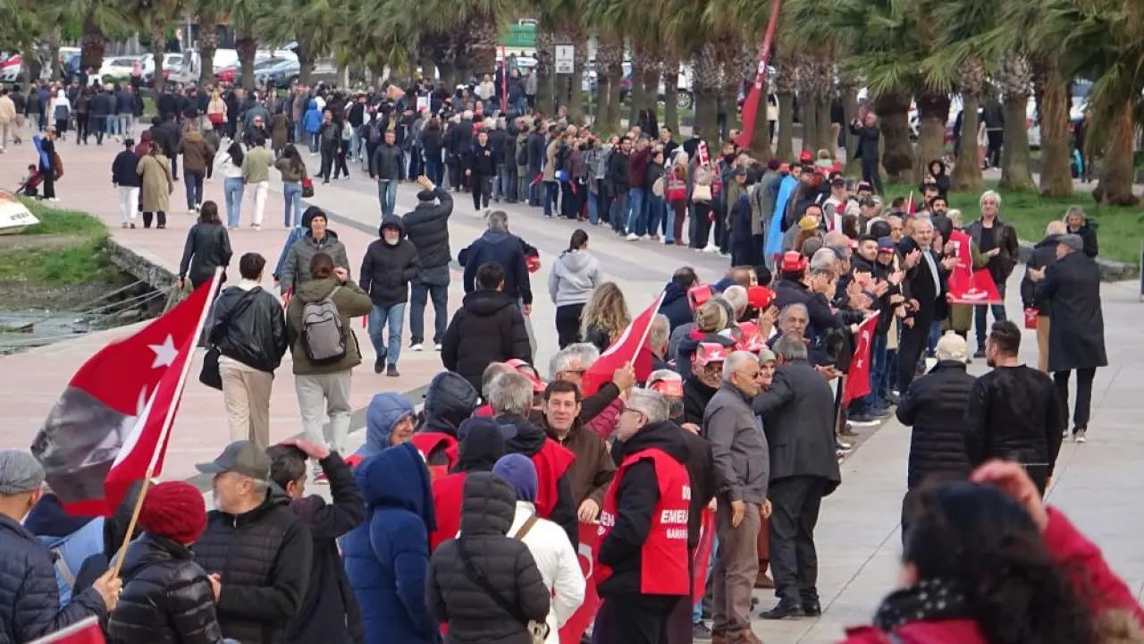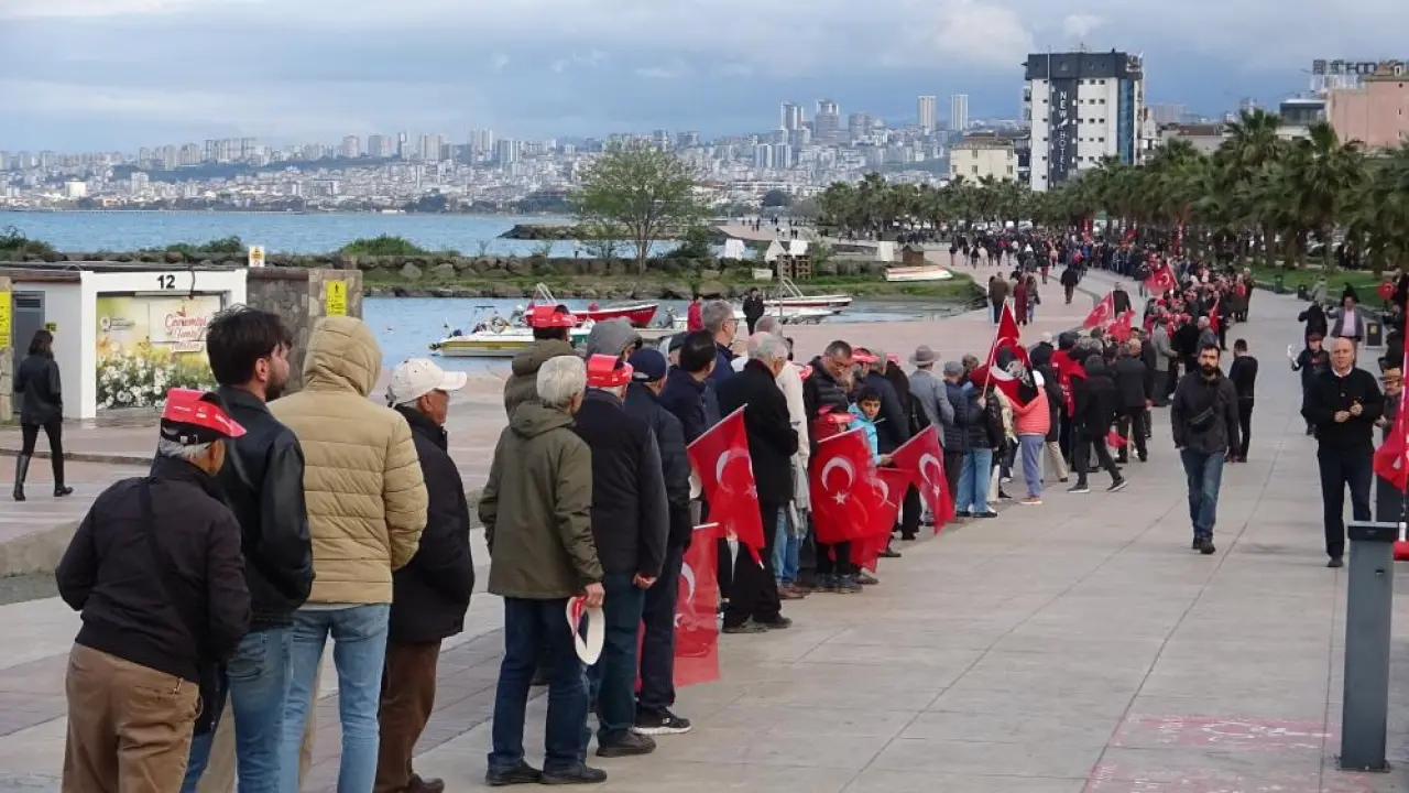 Samsun'un Atakum ilçesindeki Kurupelit Yat Limanı’nda toplanan kalabalık, ellerinde dövizlerle insan zinciri oluşturarak Çobanlı İskelesi’ne kadar uzanan bir yürüyüş gerçekleştirdi. Etkinlik, İmamoğlu’nun tutukluluğunun her bir gününe karşılık olarak 55 dakika sürmesi planlanan sembolik bir eylem olarak organize edildi.