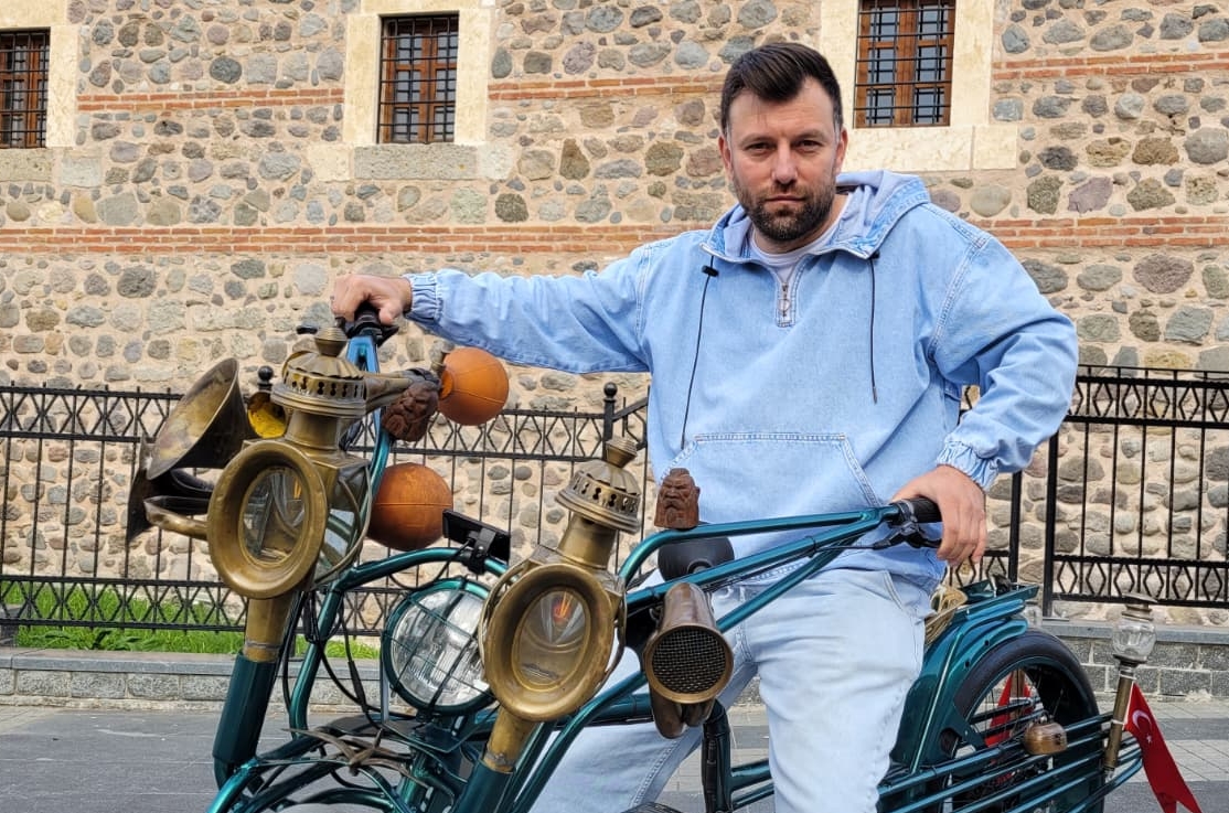 Samsun’da kıyafet mağazası işleten 42 yaşındaki İsa Ermek, eski parçaları kullanarak geliştirdiği elektrikli bisikletle görenlerin ilgisini çekiyor. Tabureden koltuk, faytondan fener, traktör lambası ve büyük kornaların kullanıldığı bisiklet, nostaljik ve özgün görünümüyle sokaklarda dikkat topluyor.