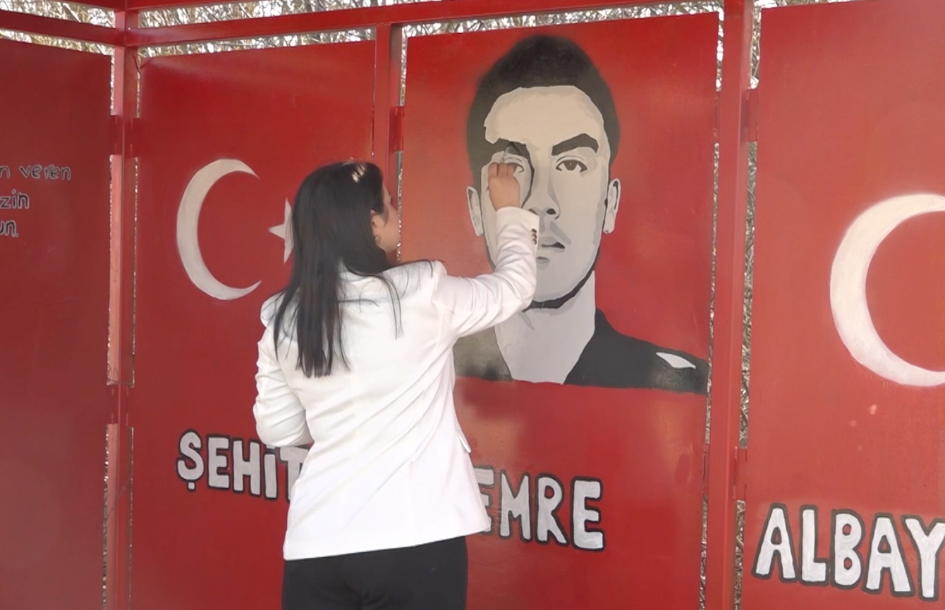 Şehidin mezarı başına gidenlerin durak kulübesini yıpranmış görmesini istemediklerini aktaran Kaman, "Bu yoldan geçen herkesin dua edebileceği bir alan olsun istedik, şehidimiz unutulmasın istedik. Eşimle elimizdeki boyalarla olabilecek en üst düzeyde çalıştık. Yani el emeğiyle, kendi isteğimizle bunu yaptık." ifadelerini kullandı.