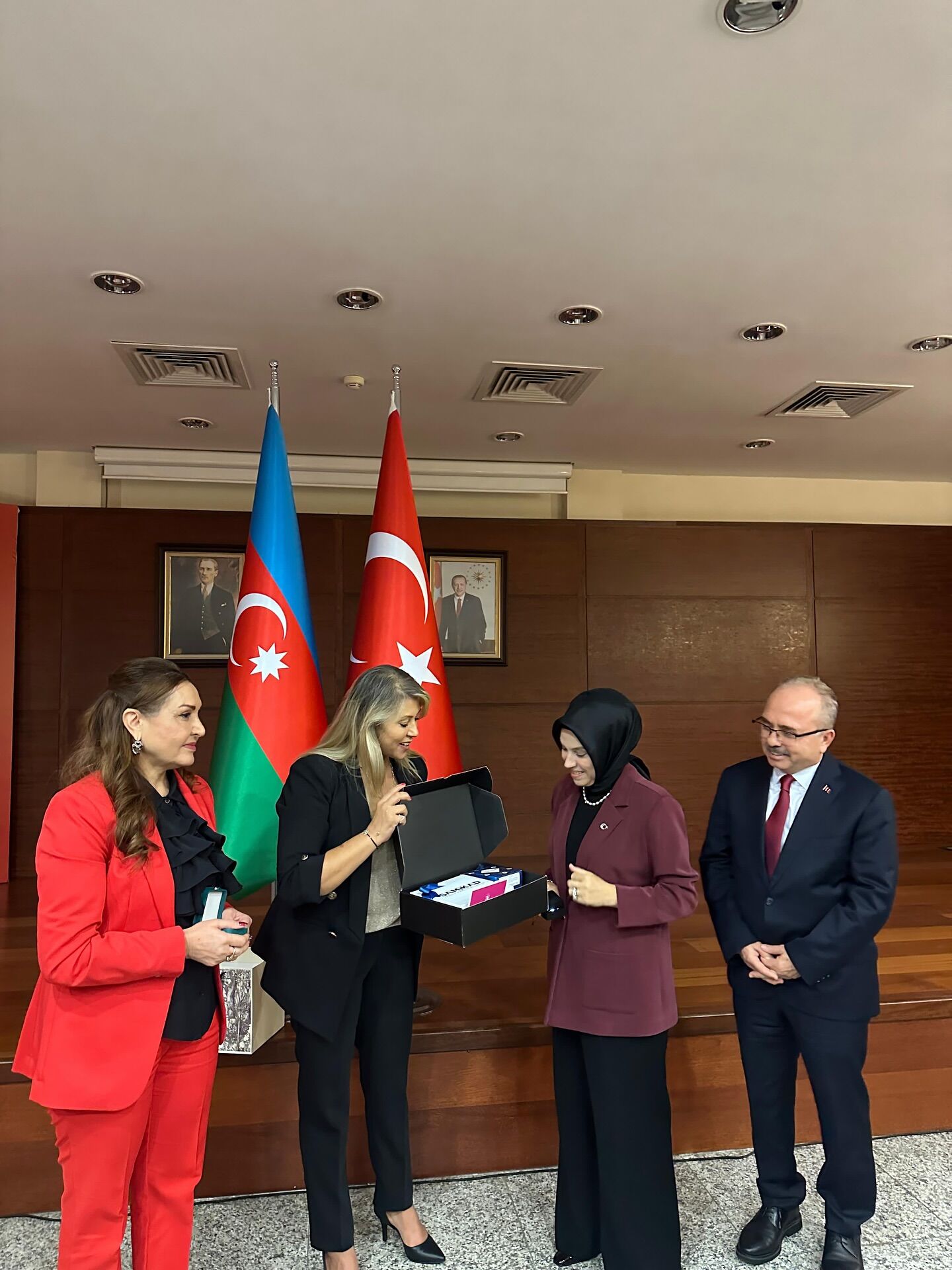 Heyet, ilk olarak Türkiye Cumhuriyeti Azerbaycan Büyükelçisi Birol Akgün’ü ziyaret ederek dernek faaliyetleri, ekonomik iş birlikleri ve kadın girişimciliğinin geliştirilmesi konularında görüş alışverişinde bulundu.
