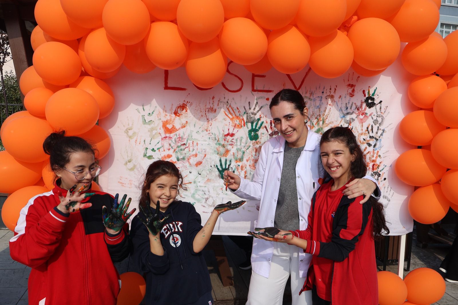 Hafta boyunca süren etkinlikler kapsamında öğrenciler, ellerini renkli boyalarla boyayarak beyaz çarşaflarla buluşturdu. Ayrıca kermeste hazırladıkları ürünleri satışa sunan öğrenciler, elde edilen geliri LÖSEV’e bağışladı. Gün boyunca süren etkinlikler, dayanışma ve yardımlaşmanın güzel örneklerine sahne oldu.