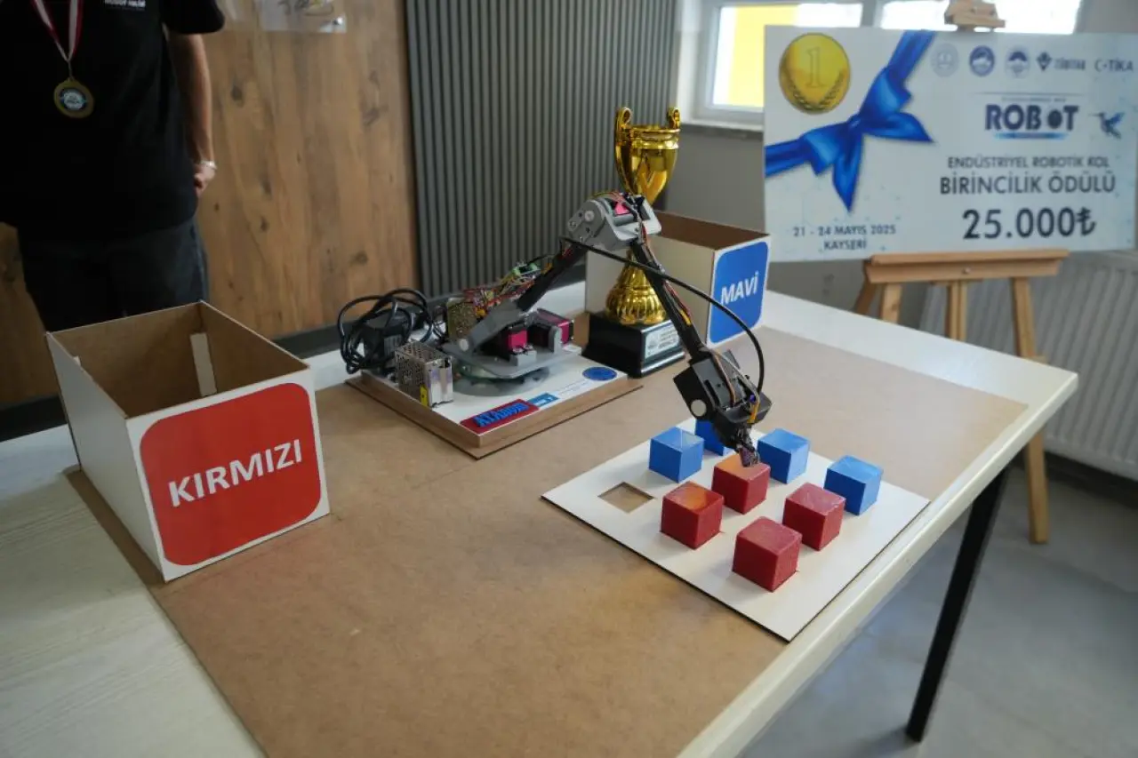 Samsunlu lise öğrencileri Kerem Köse ve Yunus Emre Ünal’ın, Danışman Öğretmen Hasan Öner öncülüğünde geliştirdiği endüstriyel robotik kol, yarışmada karmaşık bir görevi başarıyla yerine getirdi. Renklerine göre rastgele dizilmiş küpleri ayırt ederek uygun noktalara yerleştiren robotik kol, görevini en hızlı ve hatasız tamamlayan sistem olarak 1'inciseçildi.