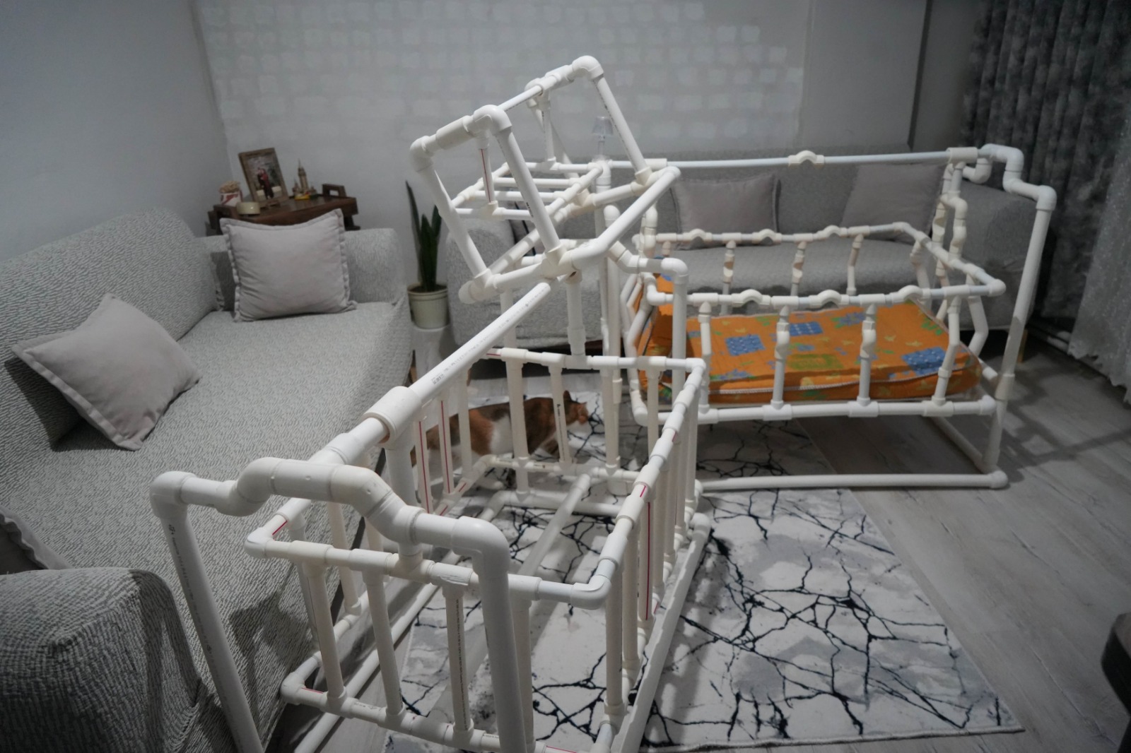Karadağ, "10 yılı aşkın bir süredir su tesisatçısıyım. 3 yıldır evliyim. Allah bir çocuk nasip ederse ona manevi bir hediye bırakmak istiyordum. 1 ay sonra eşim doğum yapacağından bir hazırlık yapayım dedim. Su borularından beşik yapmayı kafamda tasarladım. Bir ölçü almadan gelişigüzel bir şekilde evde yaptım. İçine girdiğim beşikte kavis adlı malzeme kullandığından biraz maliyetli. Bu beşikte 2-3 boy boru, 25-20 adet T boru ile yaptım. Akşamları evde olduğum zamanlarda yaptım. 3 saat gibi bir sürede beşiği bitirdim. Beşiği internete atınca insanlar, 'ne kadar sağlam, süs için mi yapılmış' demesin diye içine girdim. Yaklaşık 60 kiloyum. İçine girip sallandım ve bir sıkıntı olmadı. Sosyal medyaya da bu görüntülere attım. Sadece bir platformda 1,6 milyon kişi tarafından izlendi. Diğer platformlarda da yine hatırı sayılır bir izlenme aldı. İsteyene bu beşiklerden yapabilirim. Videodan sonra çok ulaşan oldu. Birkaç kişiye de yapıp gönderdim. Onlar da gayet başarılı buldu" dedi.