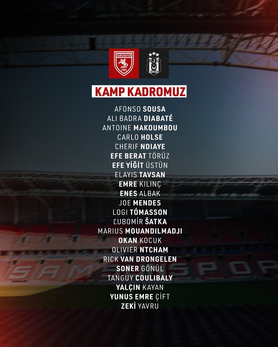 Trendyol Süper Lig'de Beşiktaş'ı konuk edecek olan Samsunspor'da maç kafilesi netleşti. Kırmızı-beyazlı ekipte eşinin doğumu nedeniyle özel izin alan savunma oyuncusu Toni Borevković kadroda bulunmuyor. Ayrıca tedavileri devam eden Jaurès Assoumou, Celil Yüksel ve İrfan Can Eğribayat da kamp kadrosuna dahil edilmedi. Teknik direktör Thorsten Fink, eksik oyuncuların yokluğunda kadroda revizyona gitti.