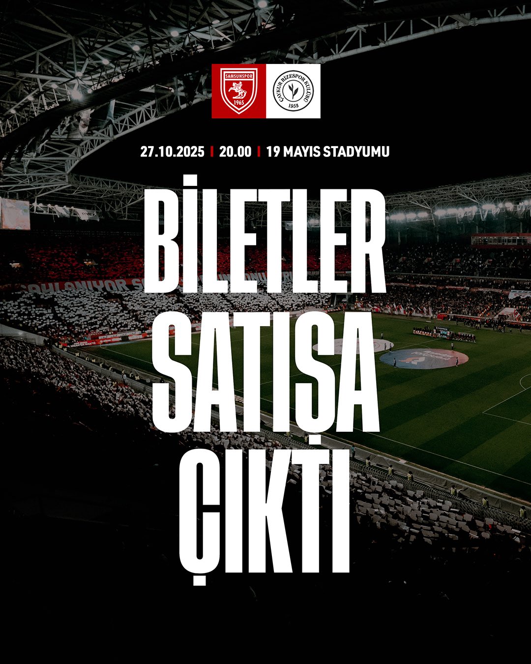 Samsunspor – Çaykur Rizespor A.Ş. karşılaşması 27 Ekim 2025 Pazartesi günü saat 20.00’de oynanacak.