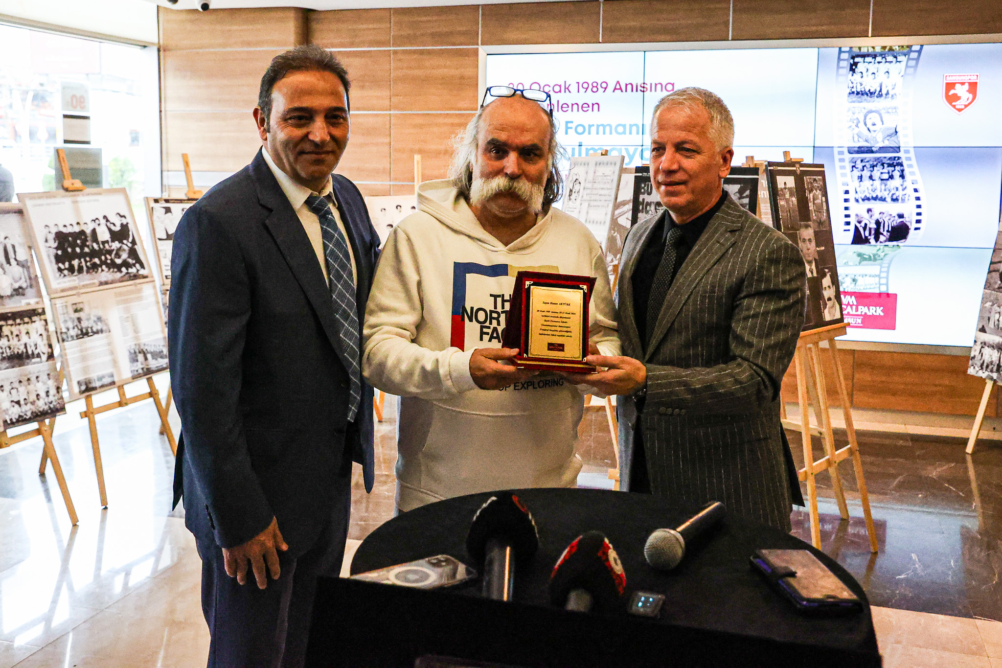 Ardından Dr. Hakan Özcan, Fotoğraf sanatçısı Hasan Aktürk'e teşekkür plaketi ve Futbol Direktör Fuat Çapa'ya çiçek takdim etti.