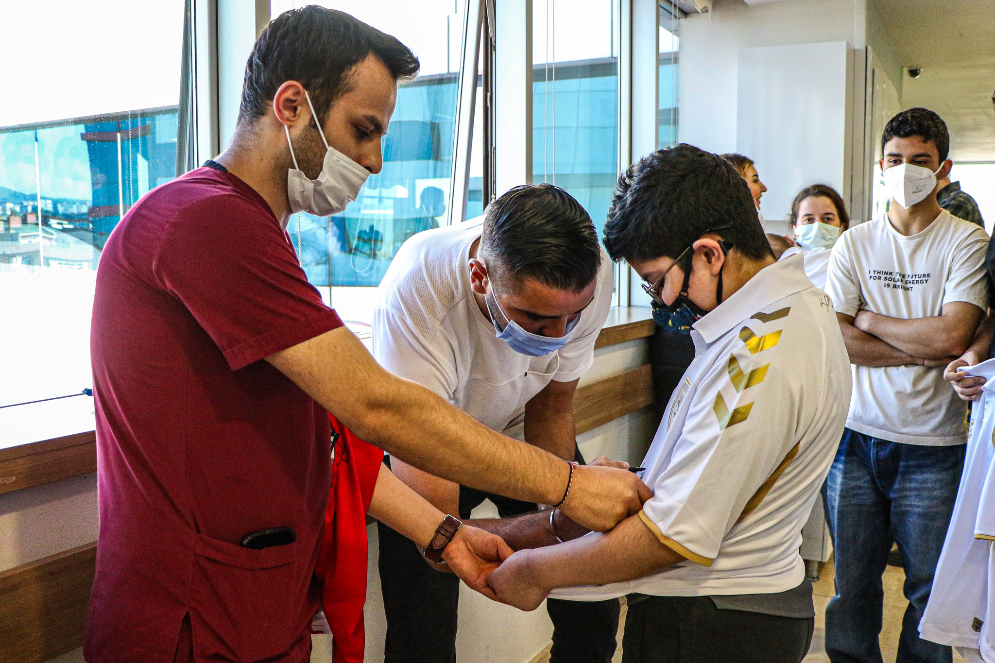 Oyunculara burada Çocuk Hematoloji Kliniği'nde görevli Prof. Dr. Davut Albayrak, Çocuk Sağlığı ve Hastalıkları Kliniği Uzmanı Dr. Şule Turan Akyol eşlik etti.