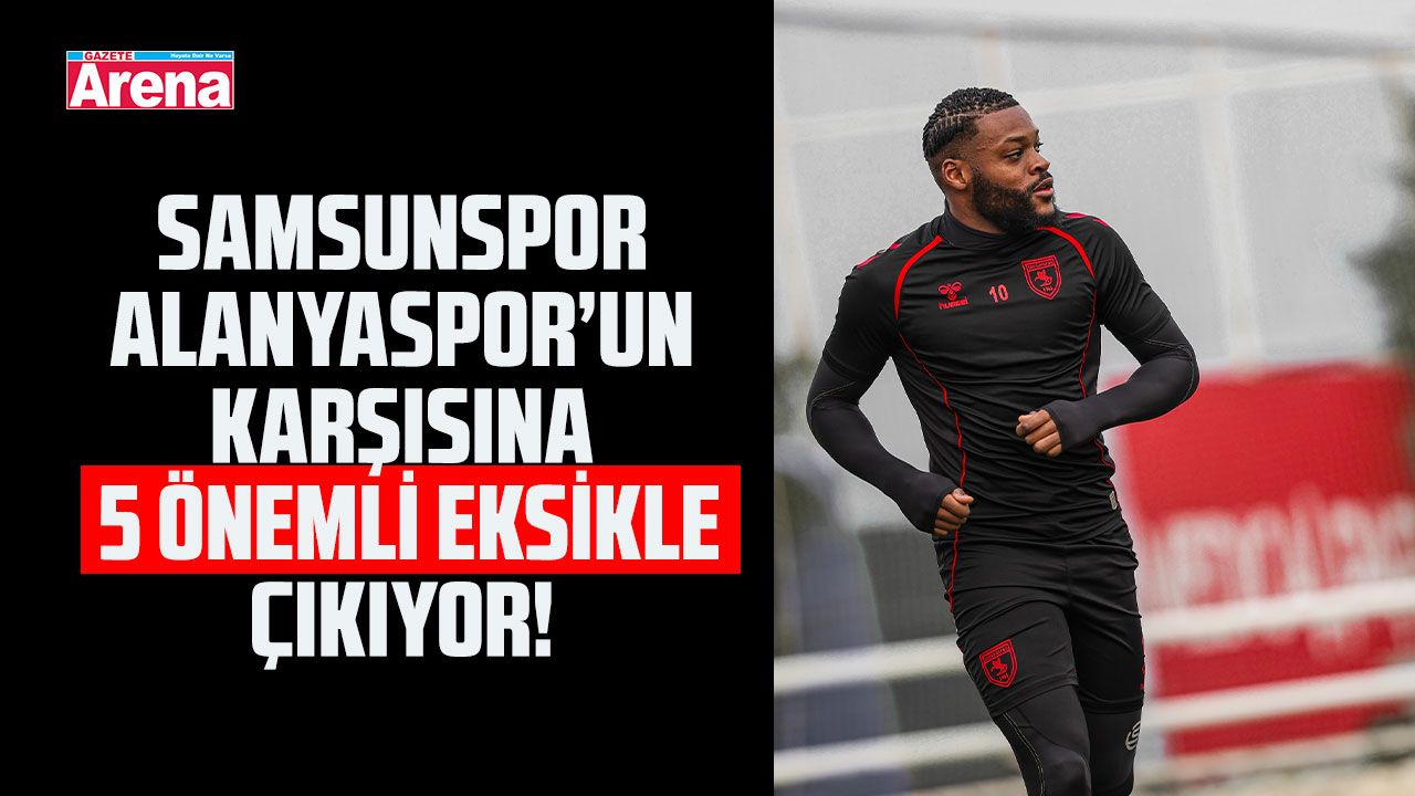 Samsunspor, sahasında Alanyaspor’u konuk edeceği kritik maçta 5 eksikle sahaya çıkacak. Kırmızı-beyazlı ekipte sakatlıkları devam eden Olivier Ntcham, Tanguy Coulibaly, Afonso Sousa ve Lubomir Satka kritik mücadelede forma giyemeyecek. Ayrıca, 45 gün ceza alan Celil Yüksel de bu önemli karşılaşmada yer alamayacak.